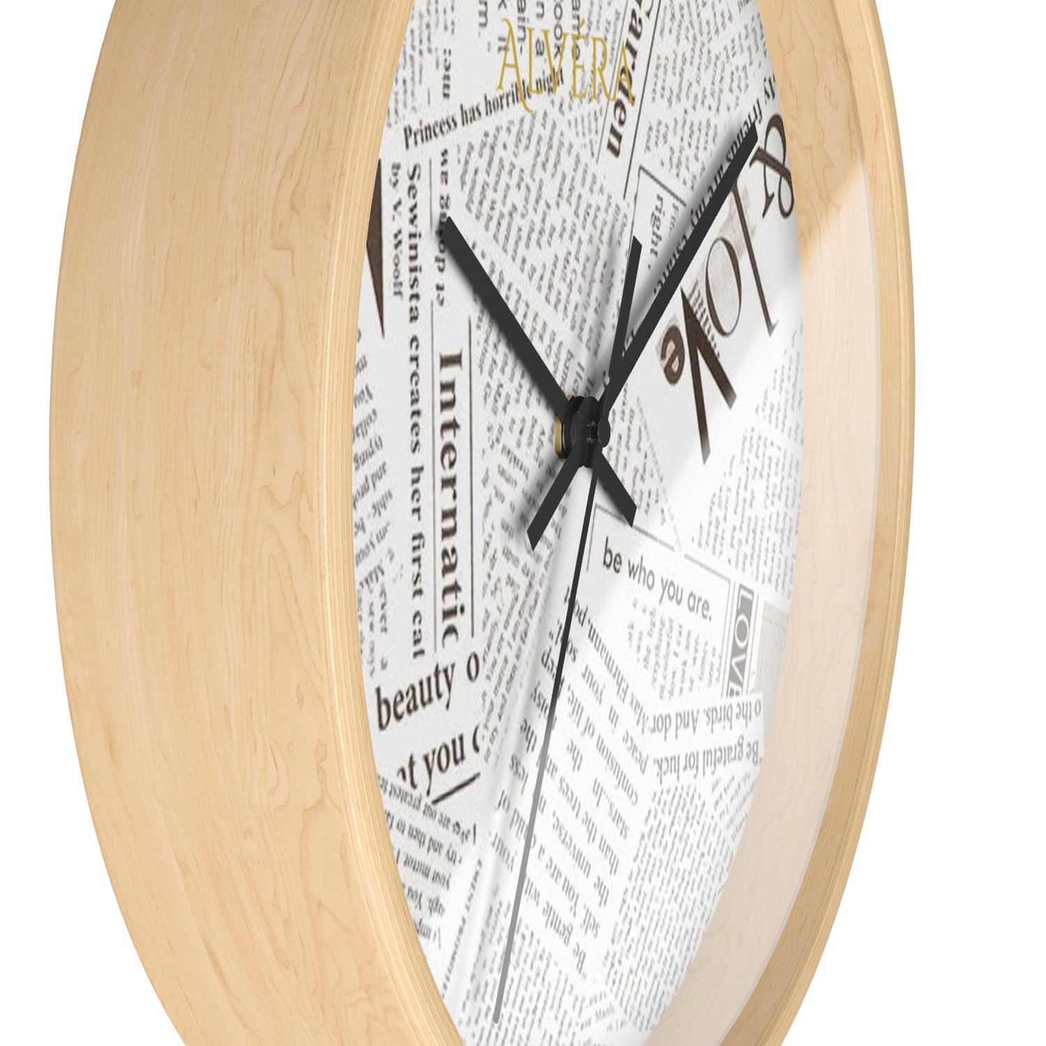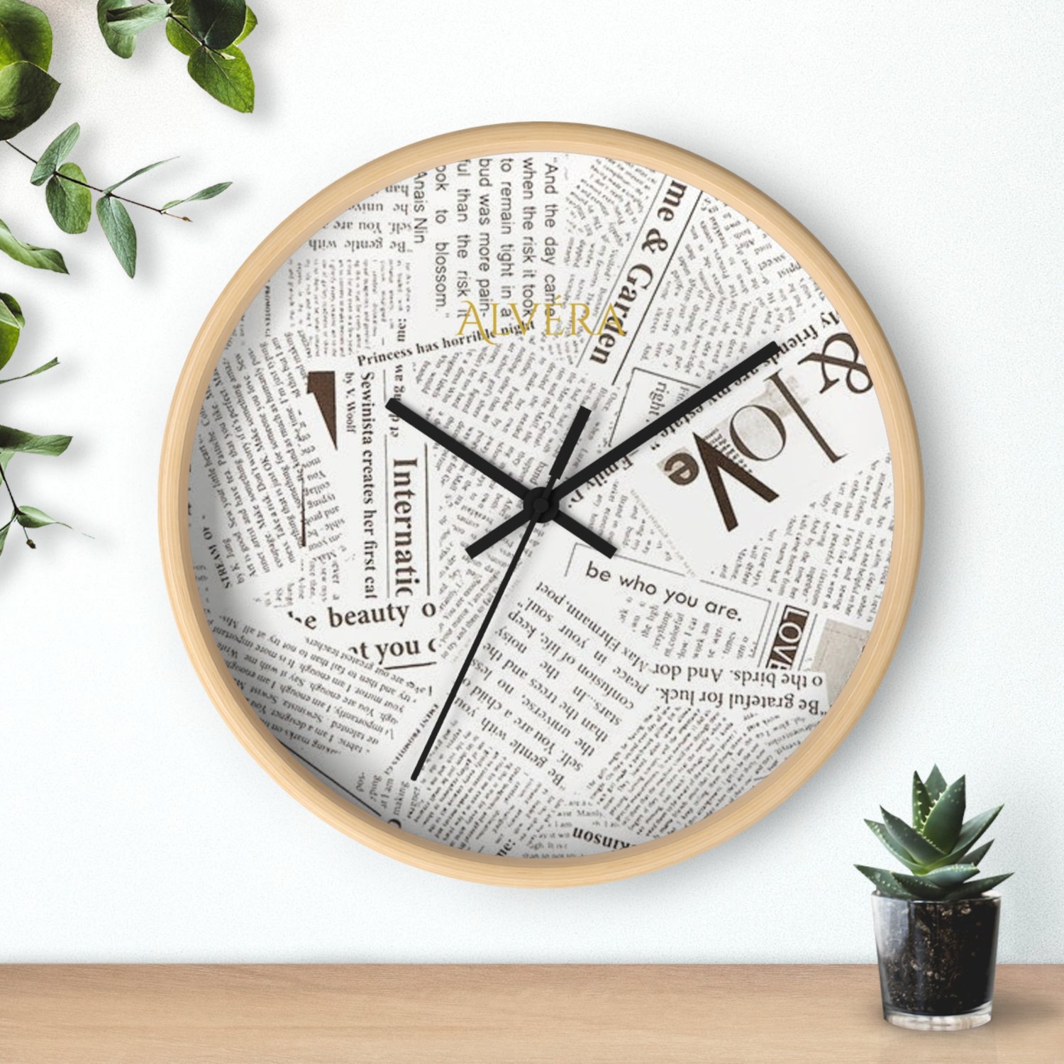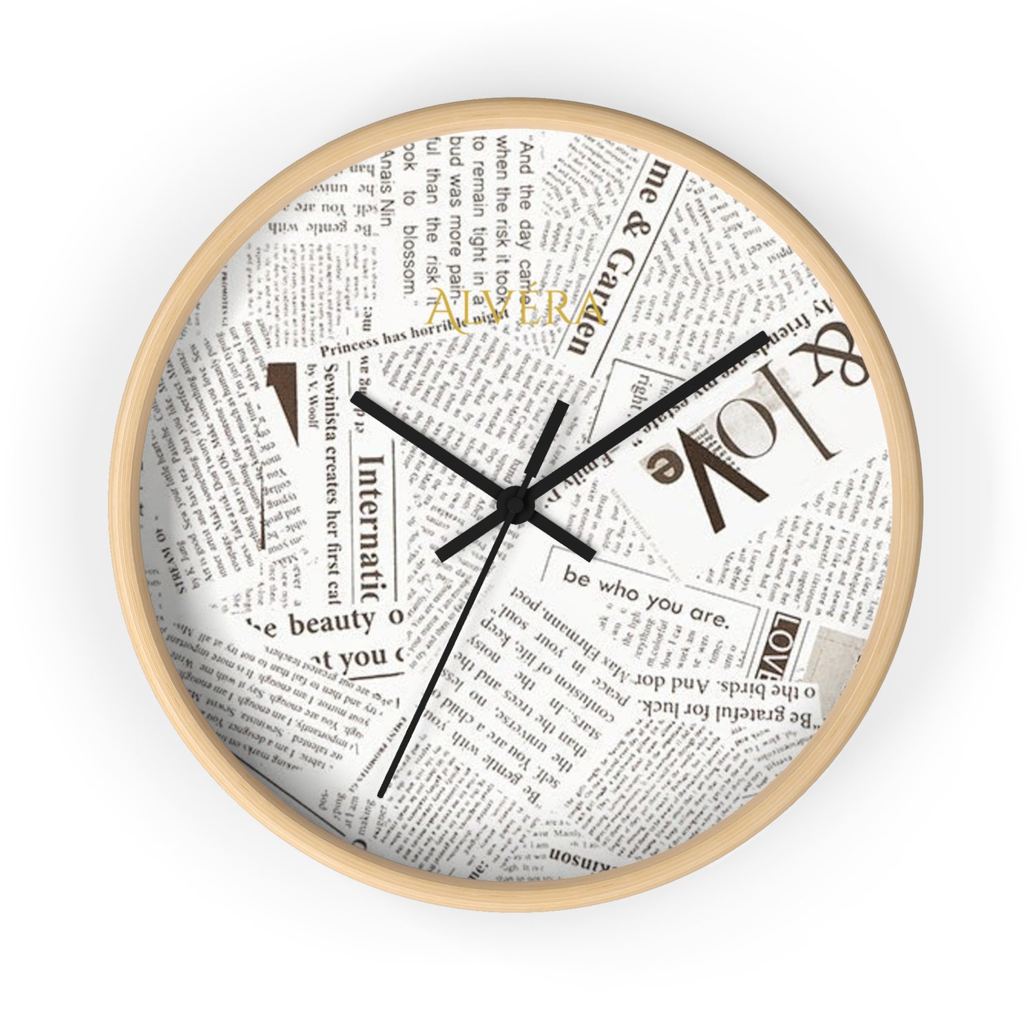 The Alvéra Chronique Wall Clock transforms the art of timekeeping into a statement of style. Its face, inspired by the layered textures and typography of classic newspapers, creates a bold visual narrative while maintaining timeless elegance. Crafted with precision hands, a polished metal frame, and premium materials, it combines functionality with refined artistry.