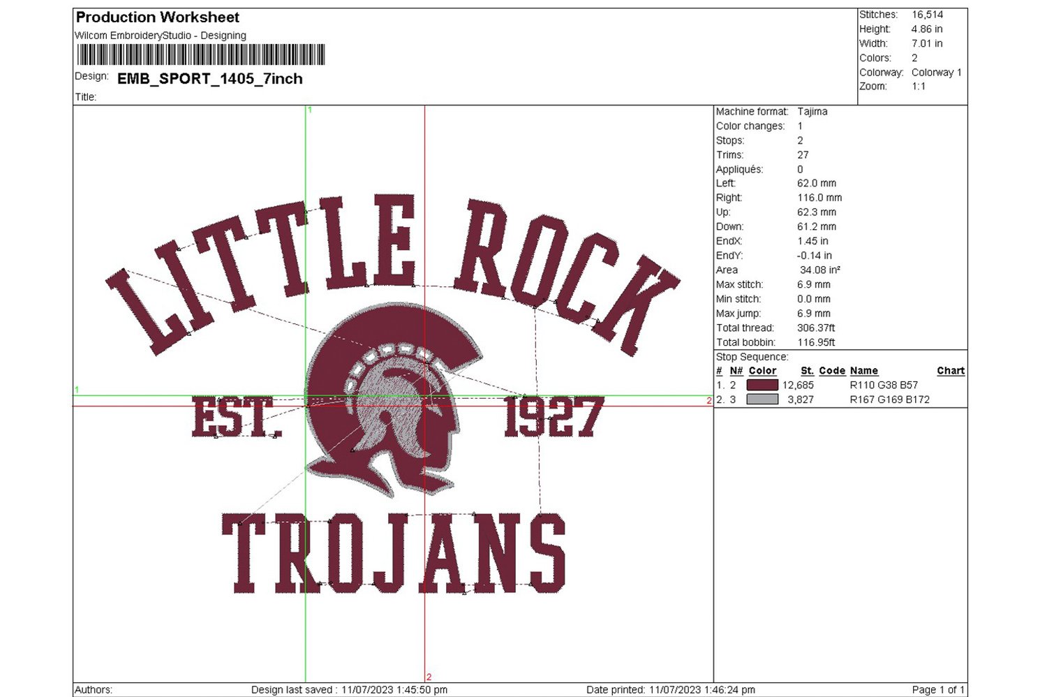 Little Rock Trojans Est 1927 Embroidery Designs, NCAA Little Rock Trojans Team Embroidery, NCAA Team Logo, 3 sizes, Machine embroidery Files, Digital Download