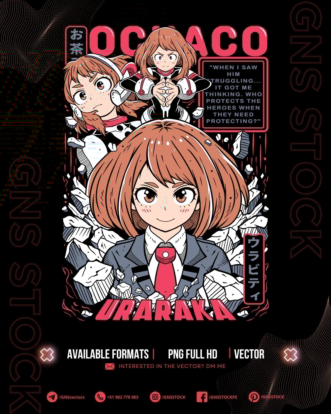 Anime Vector – Uraraka | My Hero Academia | Design for DTF, Sublimation, T-Shirts | Files: CDR, PDF, PNG, SVG