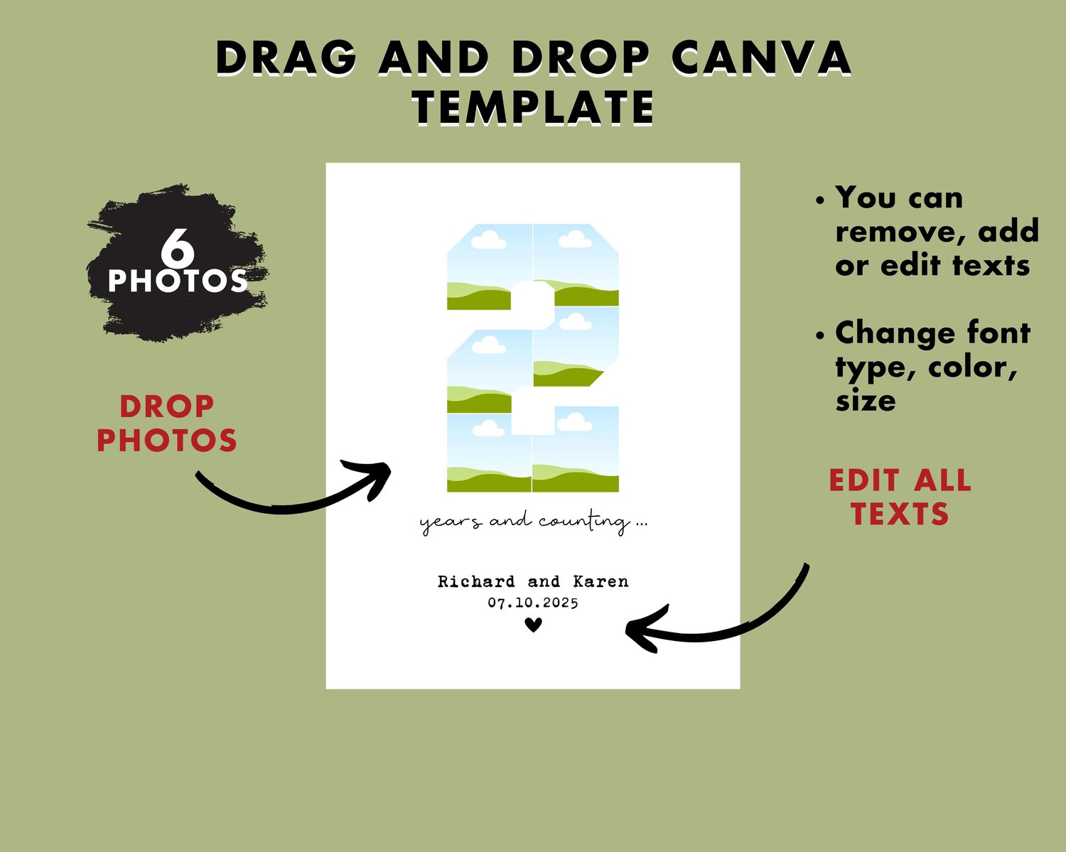 DIGITAL 2nd anniversary Photo collage Template, 2 year gift for boyfriend, Present for Her