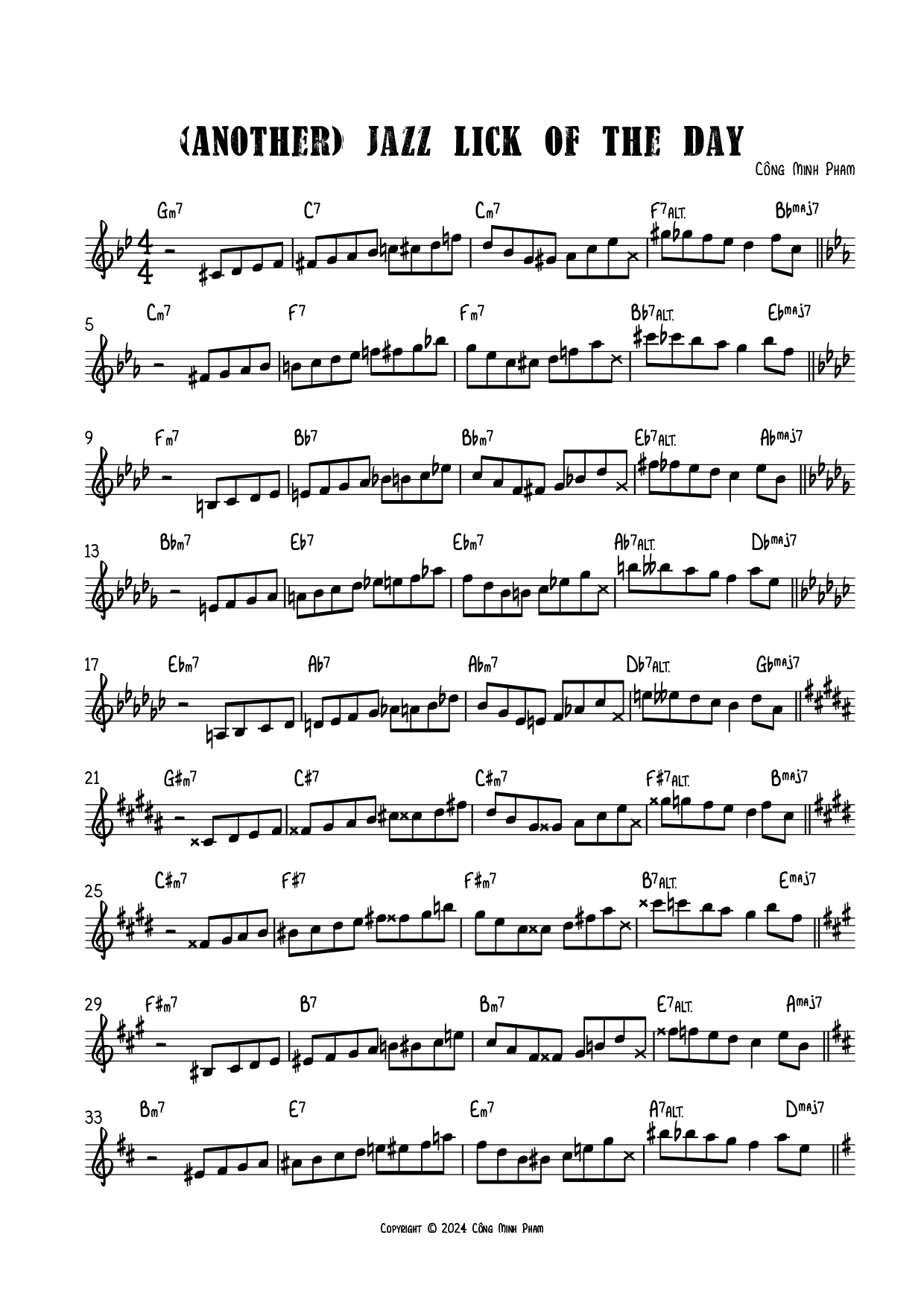 (Another) Jazz Lick Of The Day on a iim7/V - V7/V - iim7 - V7 - Ima7 chord progression