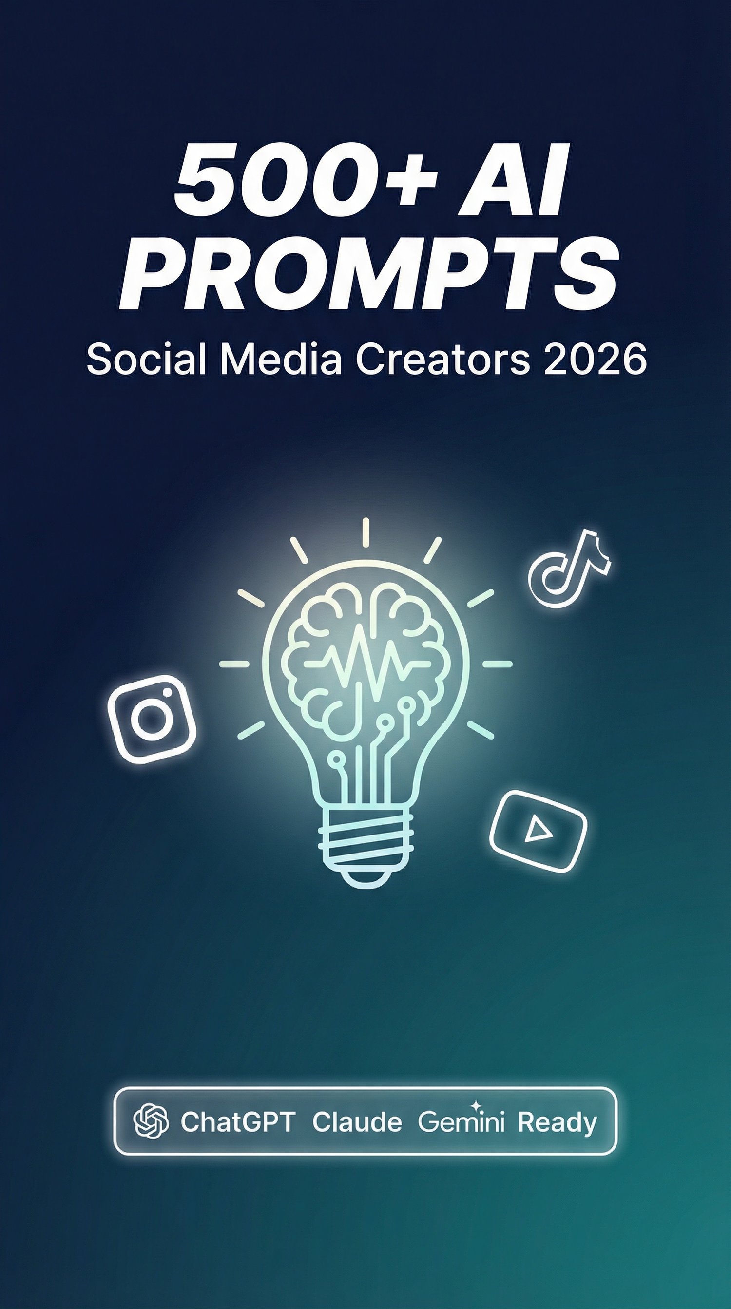 - Instagram, TikTok, YouTube, LinkedIn, Twitter/X, Pinterest prompts