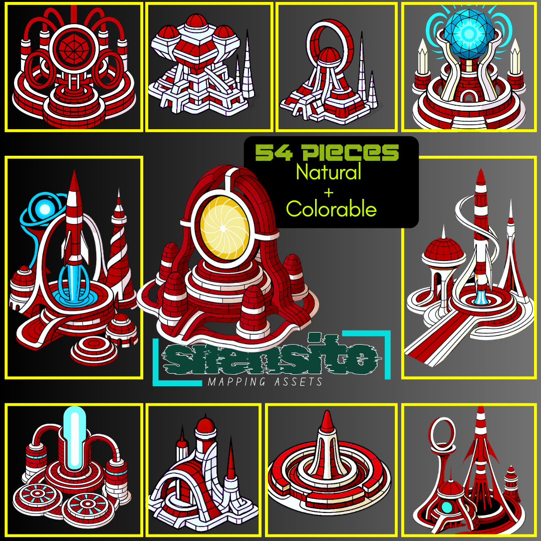 - 54 pieces of military, industrial, and spacefaring infrastructure, including launch pads, energy cores, beacons, and fortified installations.