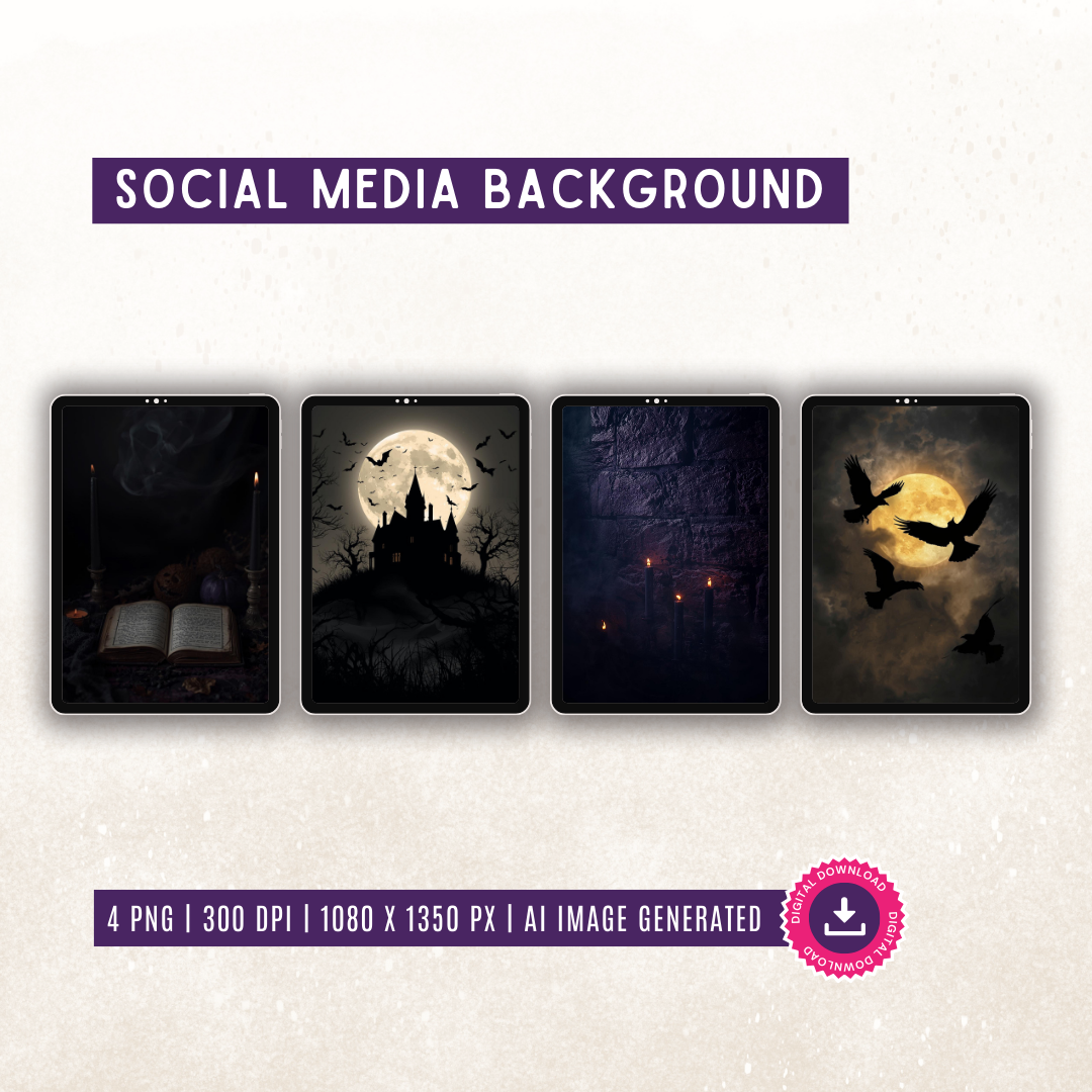 From flickering candles and eerie ravens to haunted mansions and witchy altars, these backgrounds are designed to give your posts a bold seasonal twist. Ideal for quotes, tips, or promotions that need a striking moody backdrop.