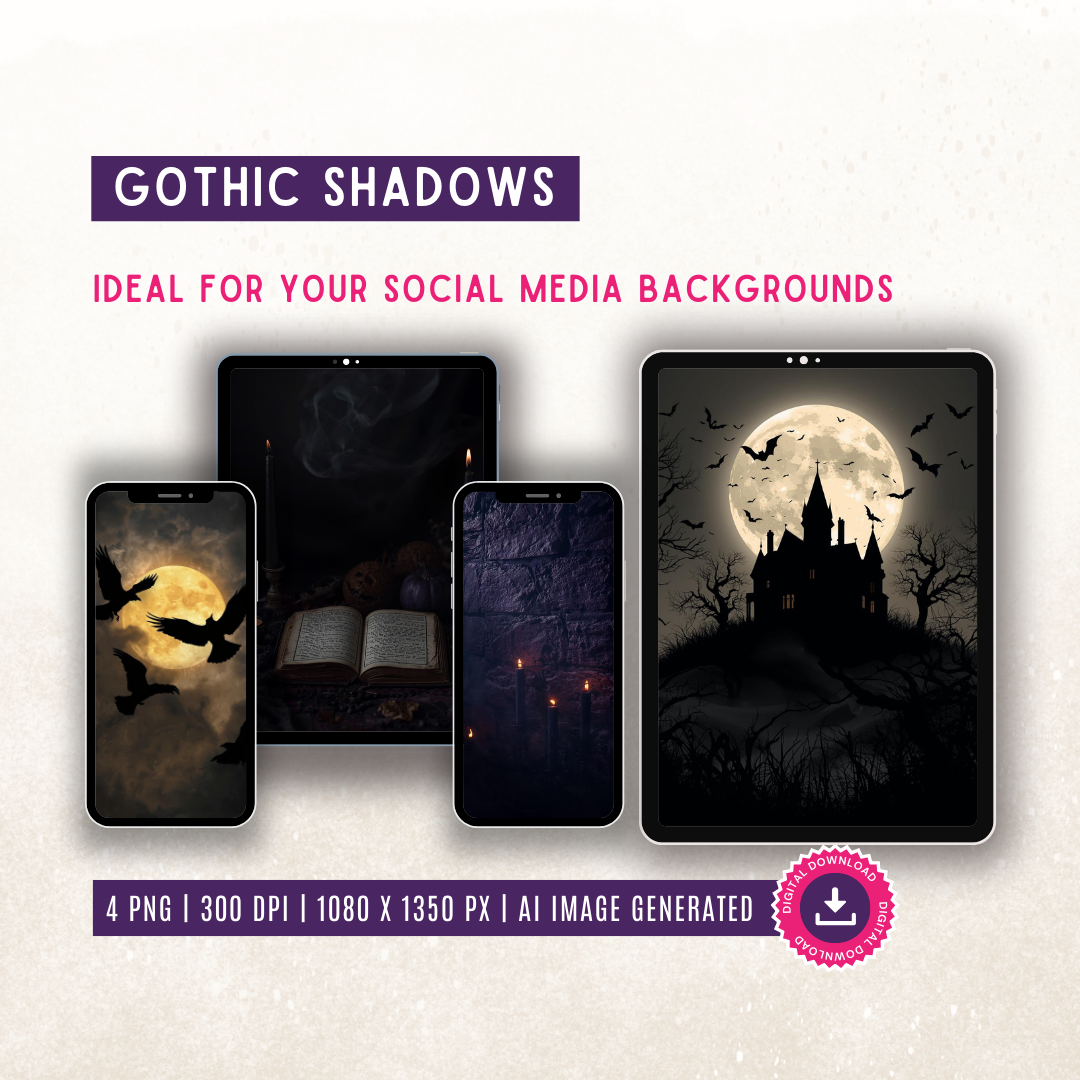 Gothic Shadows AI Image Pack – 4 Social Media Backgrounds
