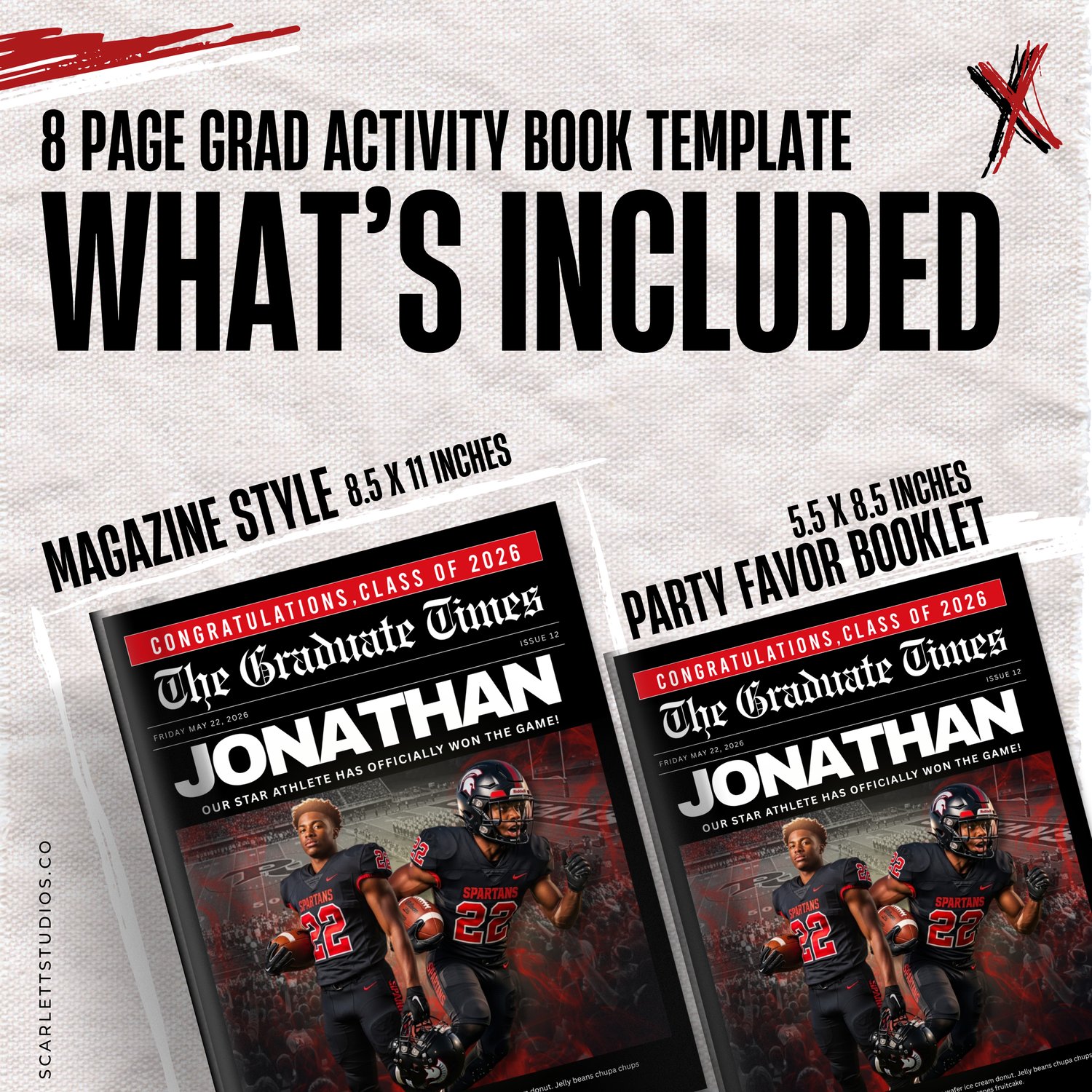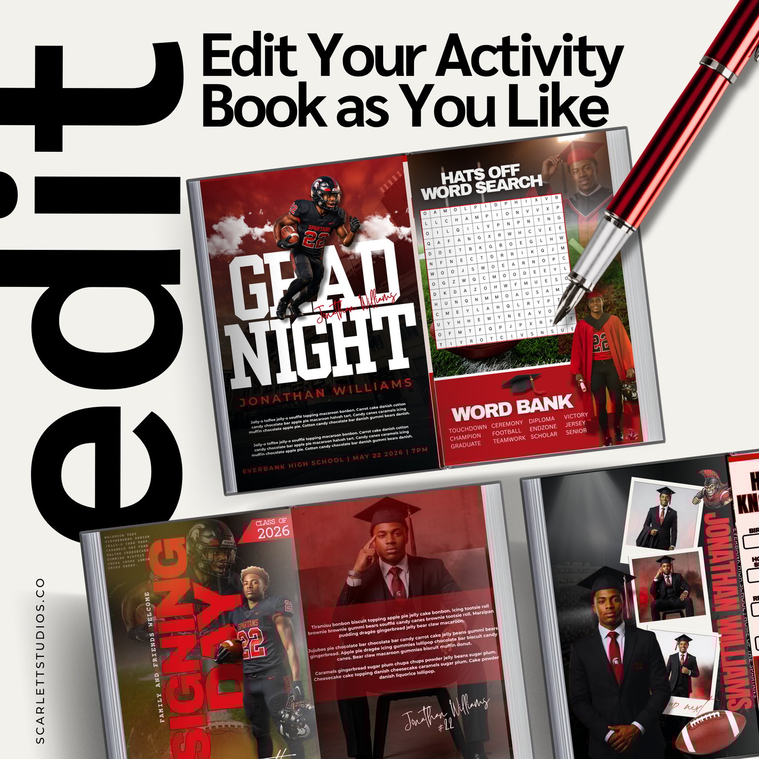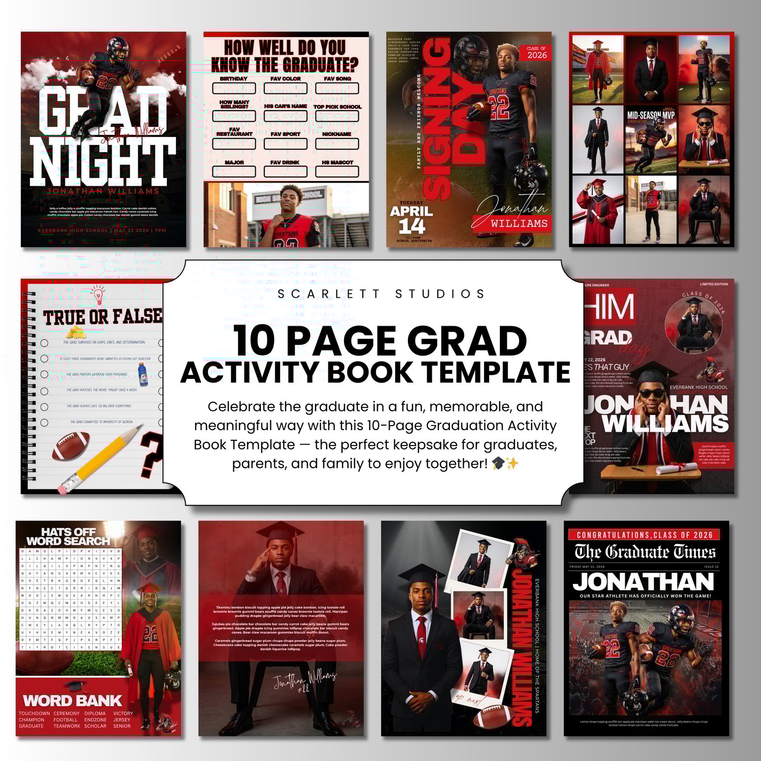 Inside the 10 engaging pages, you’ll find a variety of fun, interactive activities and memory pages that keep guests entertained while celebrating the graduate’s big achievement. Activities can be edited to include word searches, crossword puzzles, trivia, advice for the graduate, memory prompts, and more — making it perfect for graduation parties, or family gatherings.