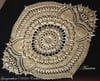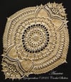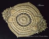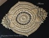 Pattern consists of 33 rounds. The displayed doily measures 15 x 18 inches, used around 400 yards of size 20 mercerized cotton thread with 1.75 mm steel hook.