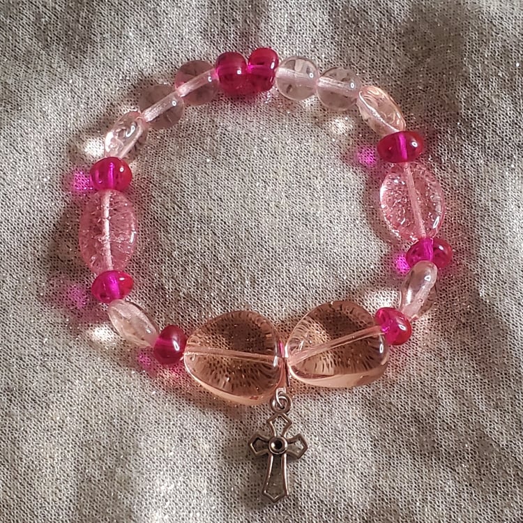 📦Midnight Blue Glass Bead Charm Bracelet #MBGB8