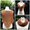 Either way the resulting shawl is reversible, light and lacy, and the magic lies in the fact that there are no complicated lace stitches to learn, just a simple wrapped stitch otherwise known as long garter stitch! It works beautifully with variegated, colourful sock weight yarn and the pattern is easy to remember making it perfect for TV or travel knitting.