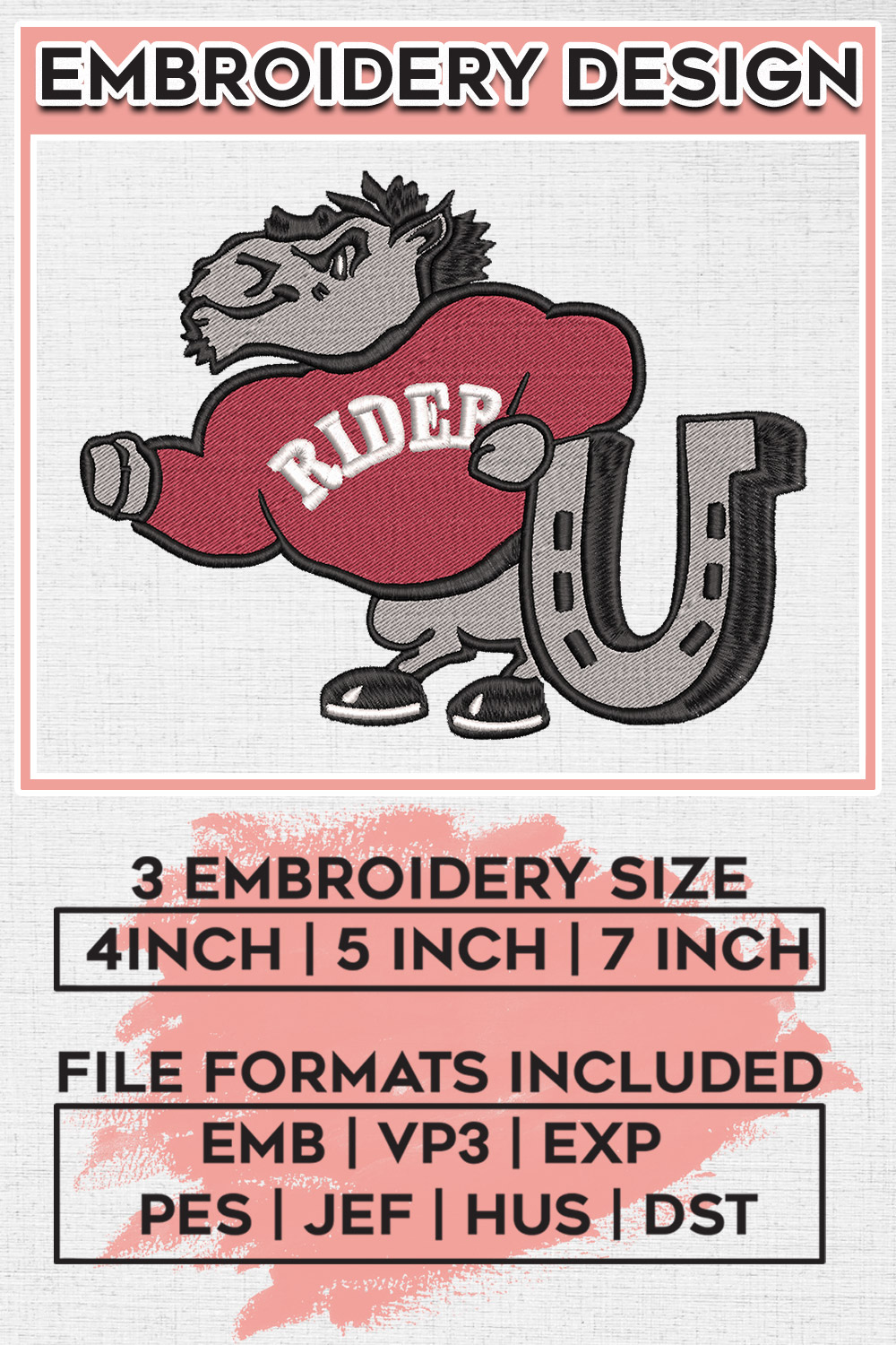 Rider Broncs Embroidery Designs, NCAA Rider Broncs Machine Embroidery Files, NCAA Logo embroidery designs, Ncaa Broncs Logo, Digital Download