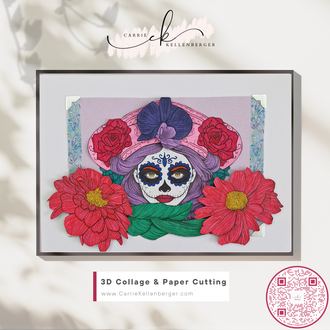 Calavera Girl I 3D Handmade paper collage art | SIMPLE COLLAGE