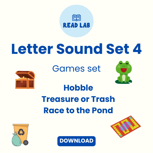 Continue your child's reading journey with our FULL Letter-Sound Set 5 Game Pack. Get all Letter-Sound Set 5 versions of Hobble, Race to the Pond, and Trash or Treasure.