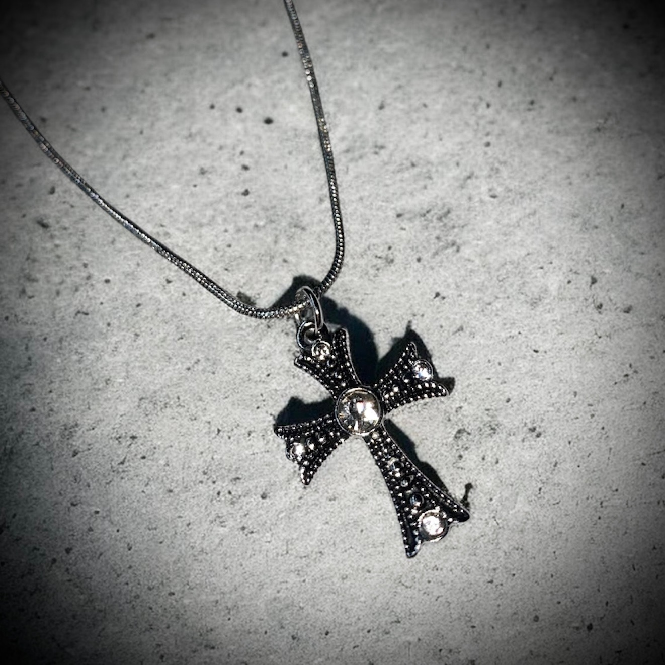 Vintage-Inspired Crystal Cross Necklace – Antique Silver Faith Pendant
