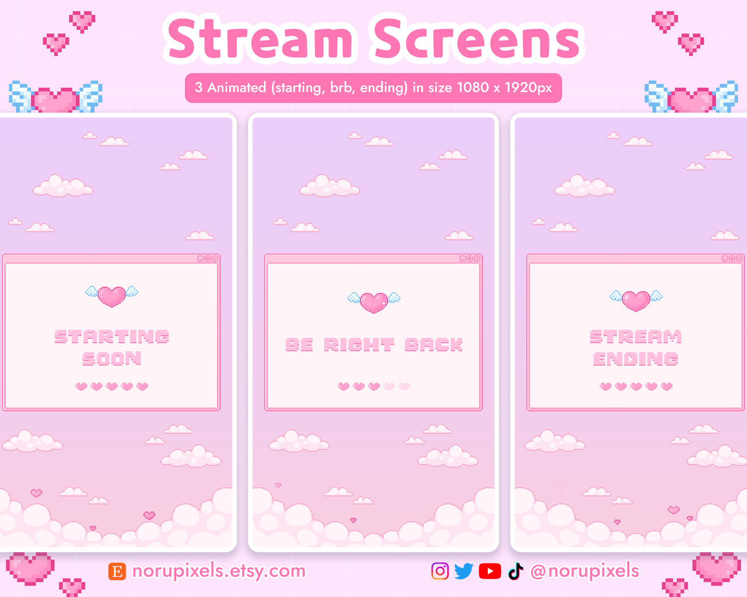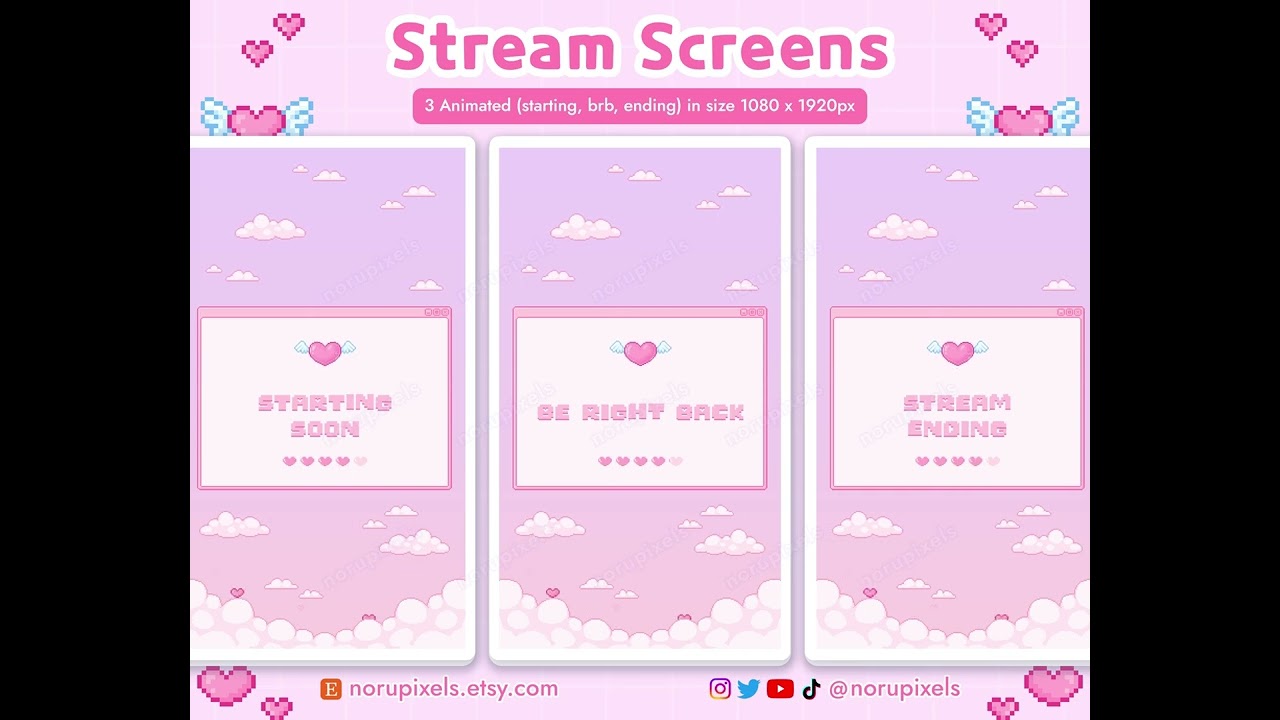 - 3 animated stream screens (starting, be right back, ending), each in .MP4 format (size 1080 x 1920px)