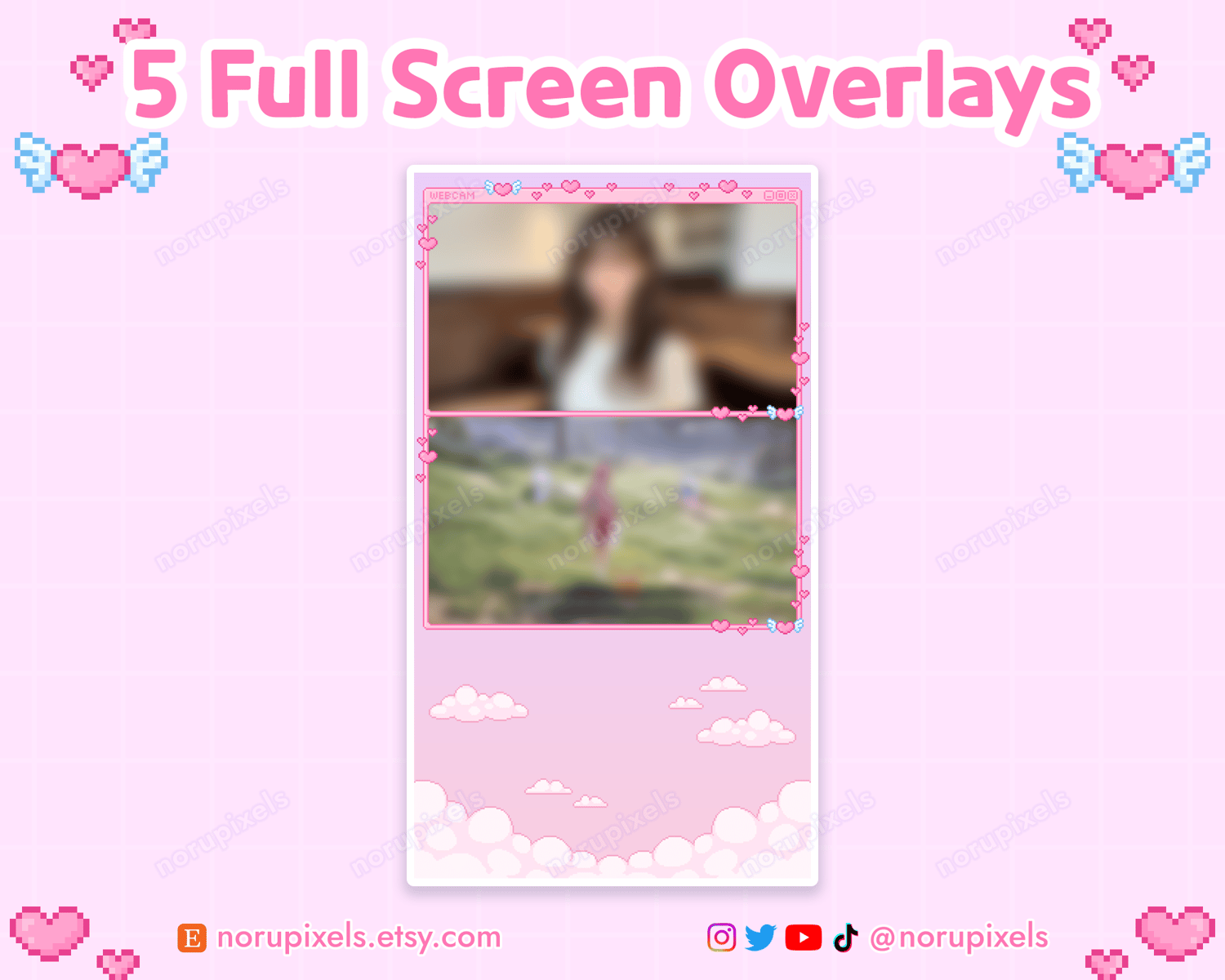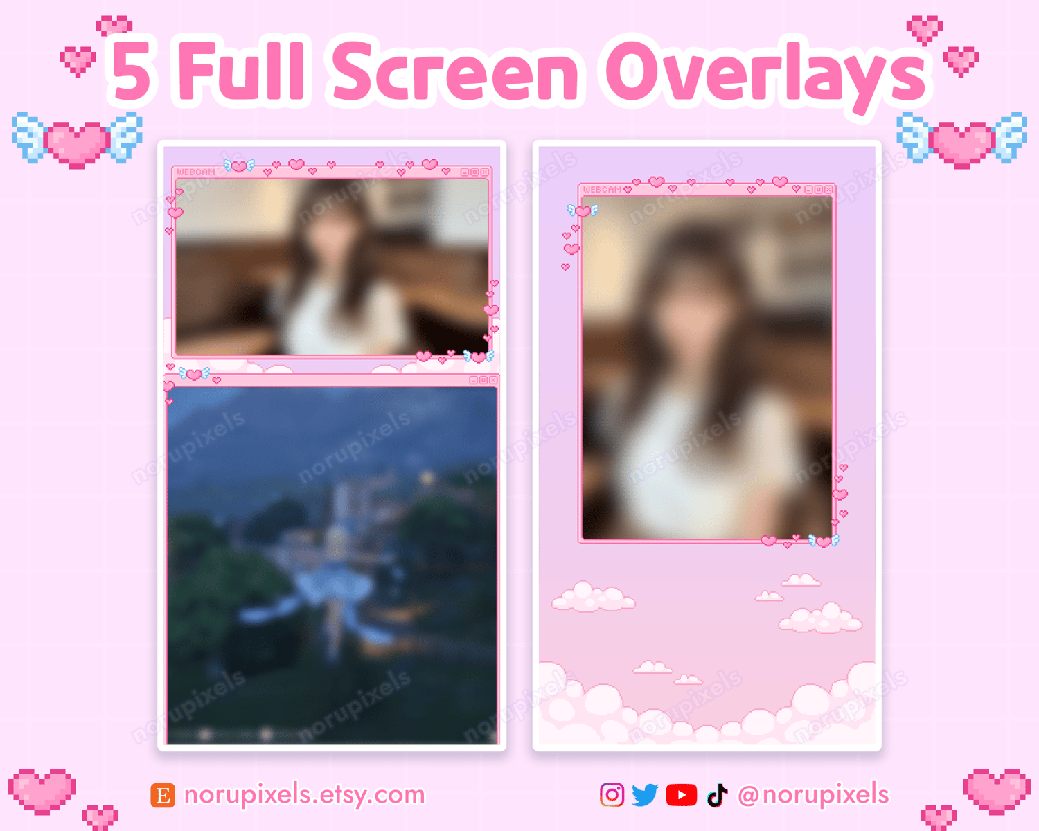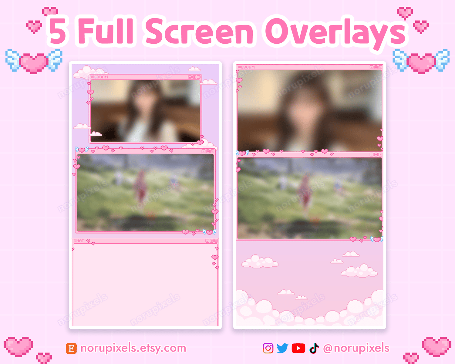 - Individual elements from overlay: 3 game borders, 4 webcam borders, 1 chat box, 7 stickers & 2 backgrounds (.PNG format)