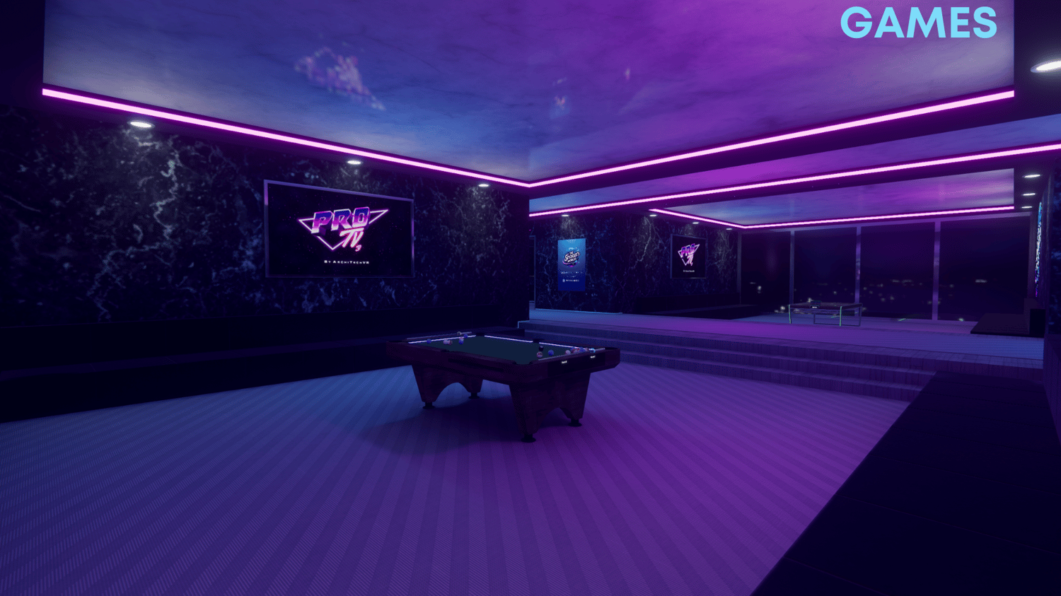 - Social Spaces: Dedicated Games Room + Rooftop with DJ Stage (VRSL & AudioLink supported)