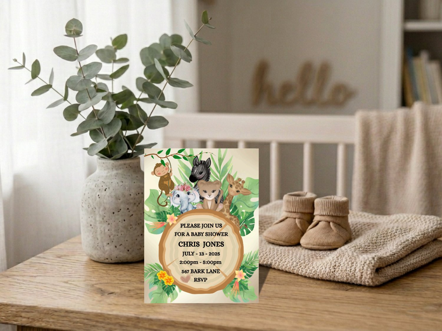 Jungle Baby Shower Invitation – Editable Printable Invite for Boys or Girls