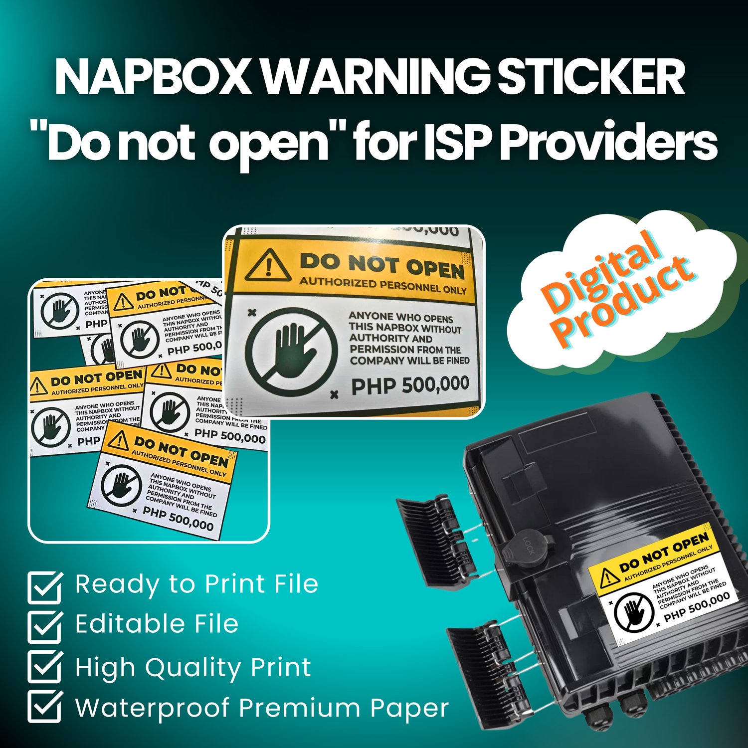 napbox warning sticker, isp provider label, fiber internet installer, ntc compliance, network protection, isp tools, waterproof sticker design, editable label, ready to print template, isp signage, philippines isp, gcash payment, maya payment, raketph seller, network safety, do not open sticker, isp branding, professional isp supplies, network security tools, do not open napbox for ISP providers