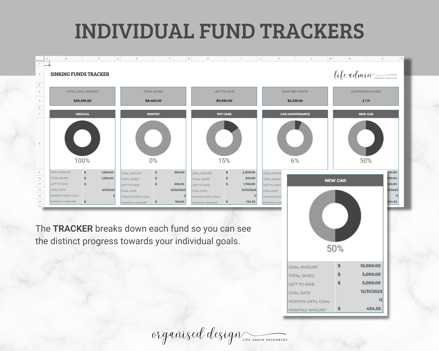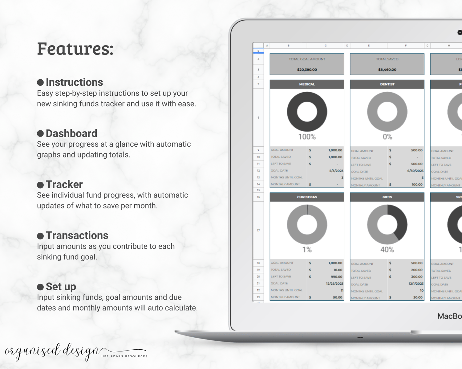 Sinking Funds Tracker Spreadsheet for Google Sheets.