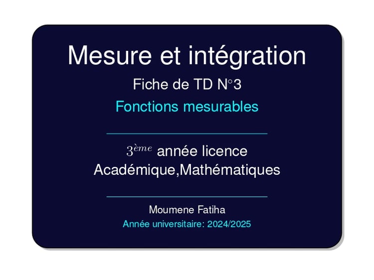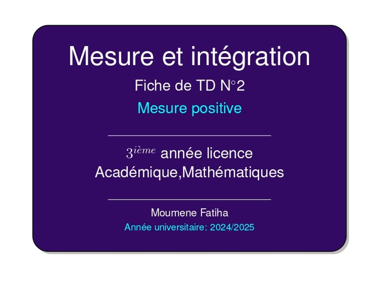 Mesure et Intégration – Série complète de fiches TD (1 à 4)