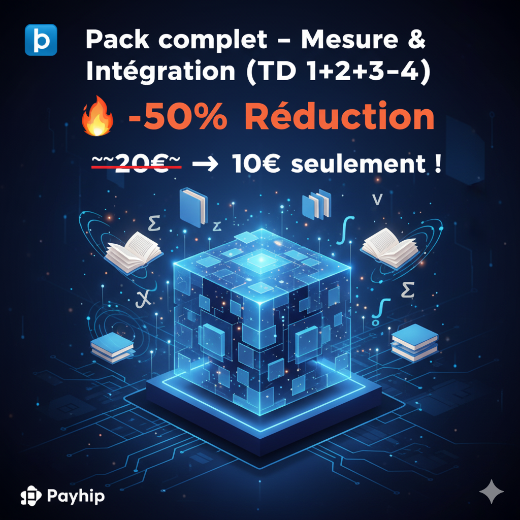 Pack complet – Mesure & Intégration (TD 1+2+3+4) avec solutions corrigées. Idéal pour la révision et la préparation aux examens