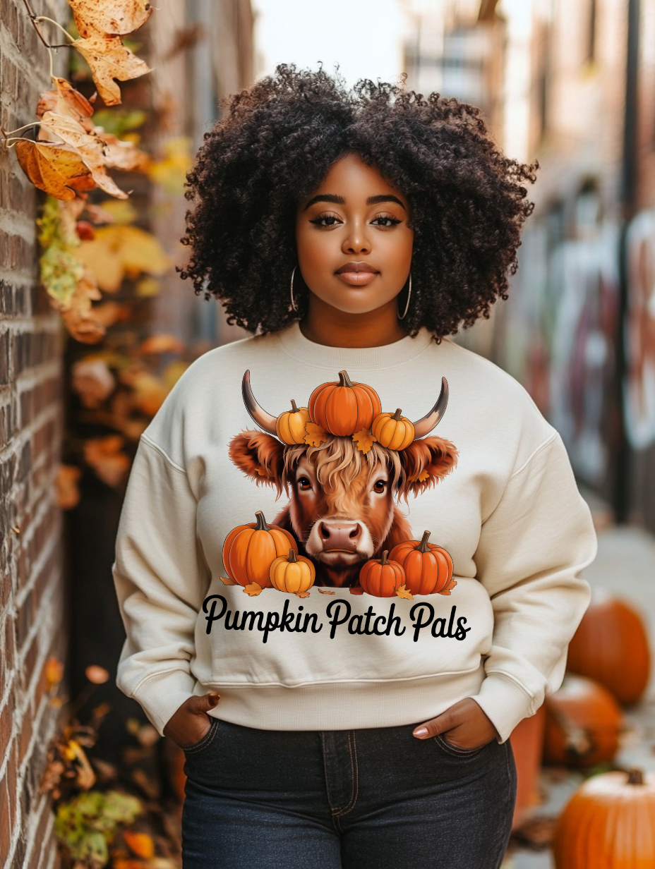 Pumpkin Patch Pals PNG – Highland Cow Fall Digital Design
