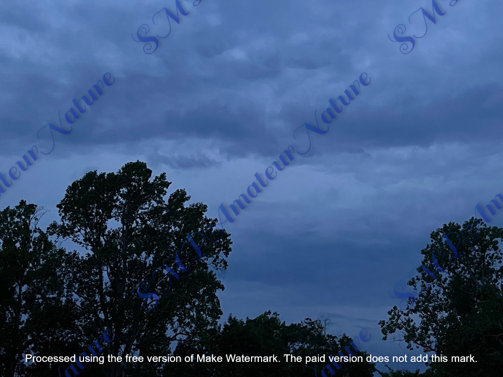 Amateur photograph of a stormy evening sky and silhouetted trees. Can be used as a background image. Image taken in Virginia, USA. Image pixels 2800x2100. Image easily resized as required for buyer needs. Purchase gives image without any watermark.