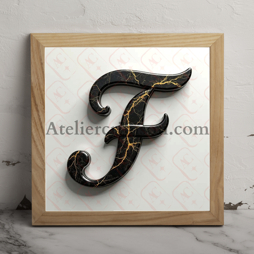 The letter F luxury black marble and gold. Download now this high quality AI-generated digital image.
