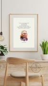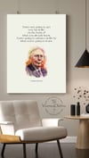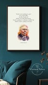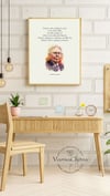 The overall design of the poster is simple and clean, with no distracting graphics or colors to detract from the powerful message of the quote. There is a beautiful watercolor painting of Charlie Munger as a graphic element. The dimensions of the poster are large, making it easily visible from a distance.
