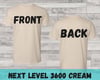 Front and Back Cream Tshirt Mockup, Cream Next Level 3600 T-shirt MockUp, Digital Mockup, Instant Download, Unisex Illustration