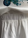 These easy to wear long length short has a wide elasticated band for comfort. Two hip pockets and the hem features a small split for side detail, with the print encrusted with crystals. Please see the photos for exact sizing and position of print.