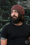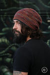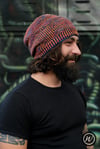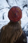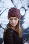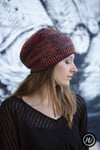 Shown in Malabrigo Arroyo shades ‘Flama’ & ‘Regatta Blue’ [335yd/306m per 100g; 100% Superwash Merino]Shown in size 22in/56cm on model with 21.75in/55.25cm circumference head