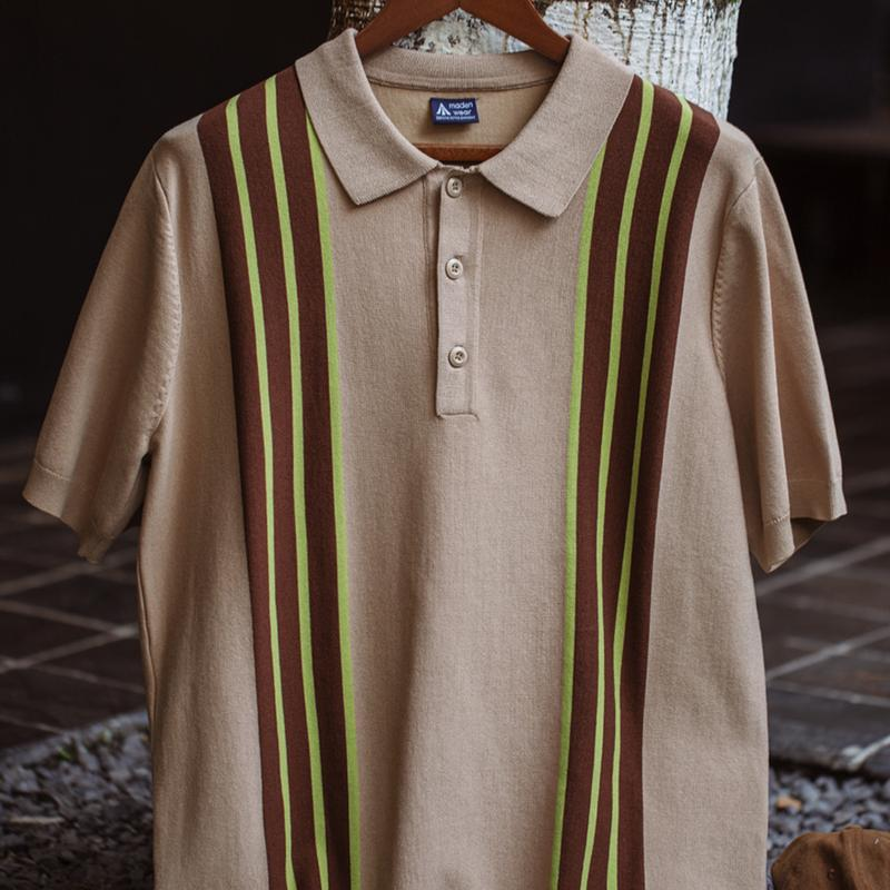 Classic Knitted Polo Shirt Made for Men's Daily Striped Polo T-shirt with Collar Brand: Uncle Fu Elegant Men's Attire for Summer