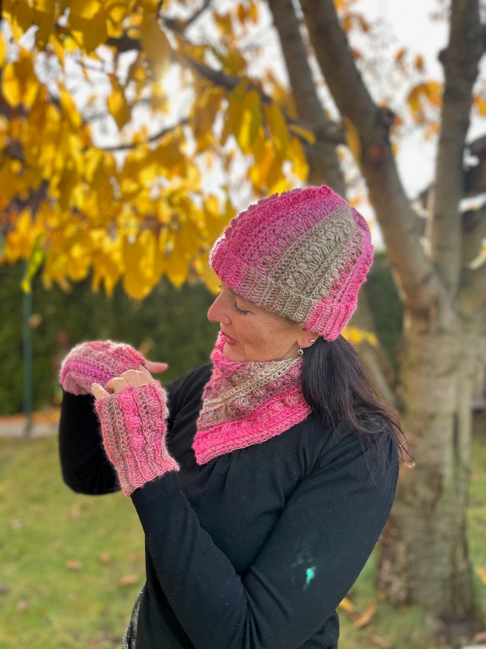 Your wonderful fingerless mitts SAMBA with their unique relief pattern Not only will provide you with unbeatable warmth, but thanks to their original textured pattern and practical, free-finger design, they will become your favorite and most stylish accessory.