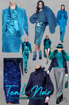 Teal Noir is perfect for statement looks, eveningwear inspiration, and elevated everyday outfits. Use it for outerwear, structured silhouettes, accessories, and bold accent pieces. The contrast between deep teal and black creates a confident, editorial feel without feeling overpowering.