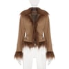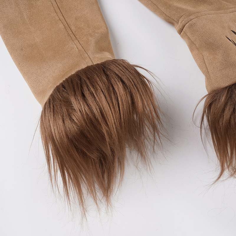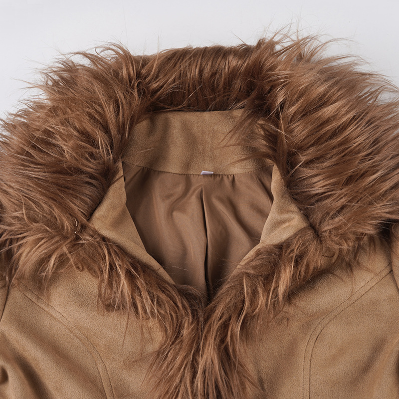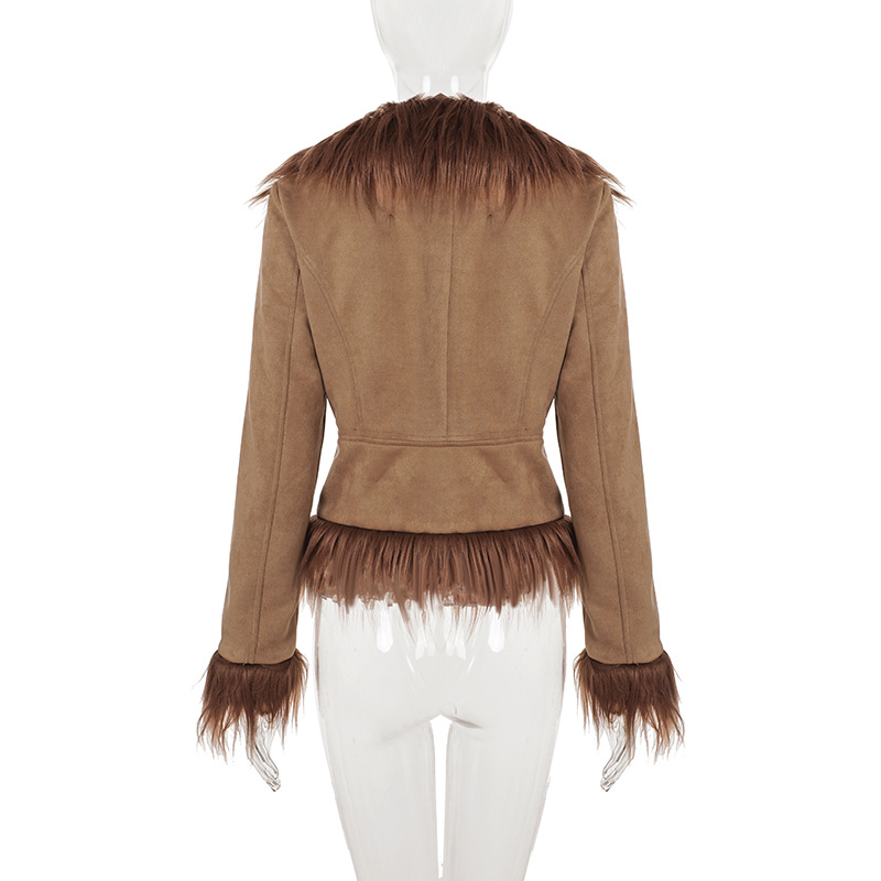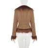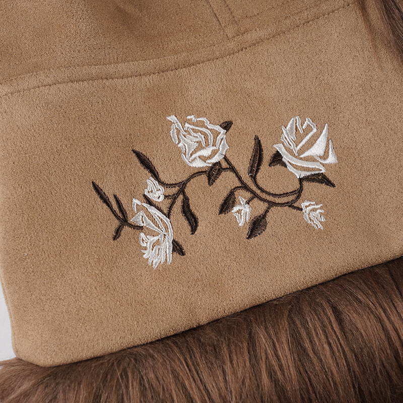 Vintage Western-style floral embroidery brown suede fur collar jacket