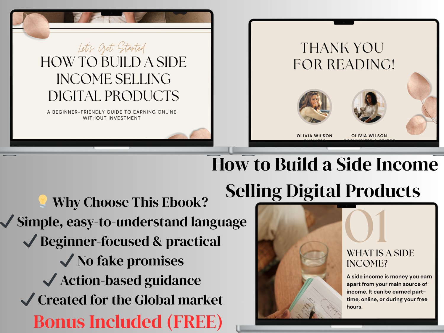 📘 How to Build a Side Income Selling Digital Products ⭐ Beginner-Friendly | Instant Download | No Experience Needed