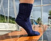 For sailors, work in the boat yard is very stop-and-go. One day you’re busy sanding wooden railings for 6 hours, and the next day you have nothing to do but sit and watch your varnish dry! These socks are ideal for intermittent working times. The leg texture, once established, is easily followed without reference to your paper pattern, and the modified boomerang heel has a ‘rest spot’ in the middle in case you can’t complete it all in one sitting. So get started now, and start dreaming of your next day back out on the water!