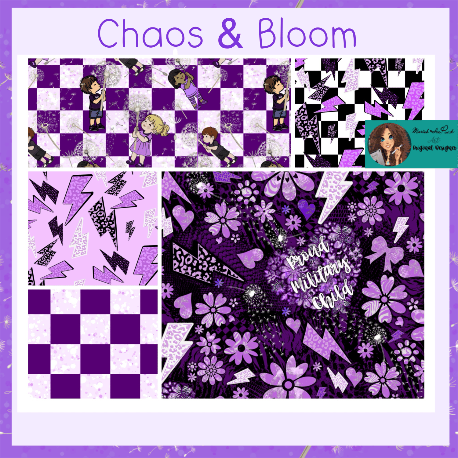 Designed to represent strength through chaos, this set blends edgy patterns with versatile coordinating pieces — perfect for making statement products that stand out.