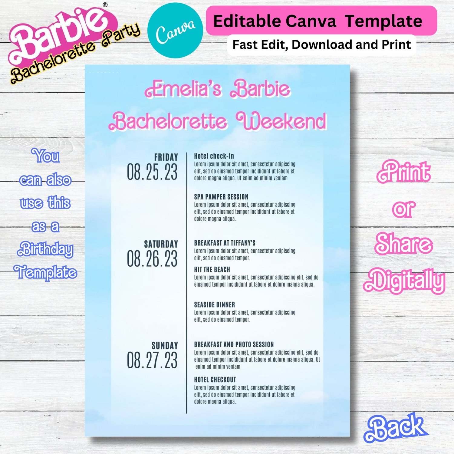 Introducing our Barbie movie invitation - the perfect choice for any Barbie lover's special celebration! Whether you're planning a bachelorette weekend, a birthday party, or any other occasion, our customizable invitation template is just what you need.