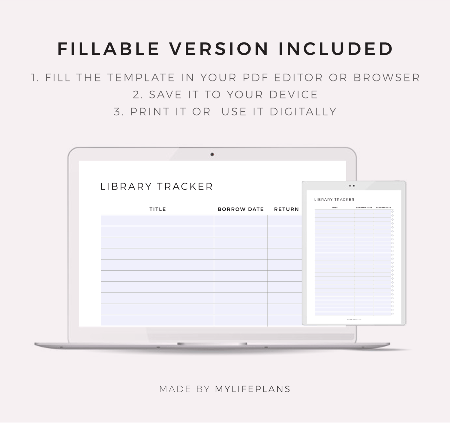 Book Library Template, Printable & Fillable, A4/Letter Size