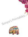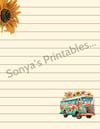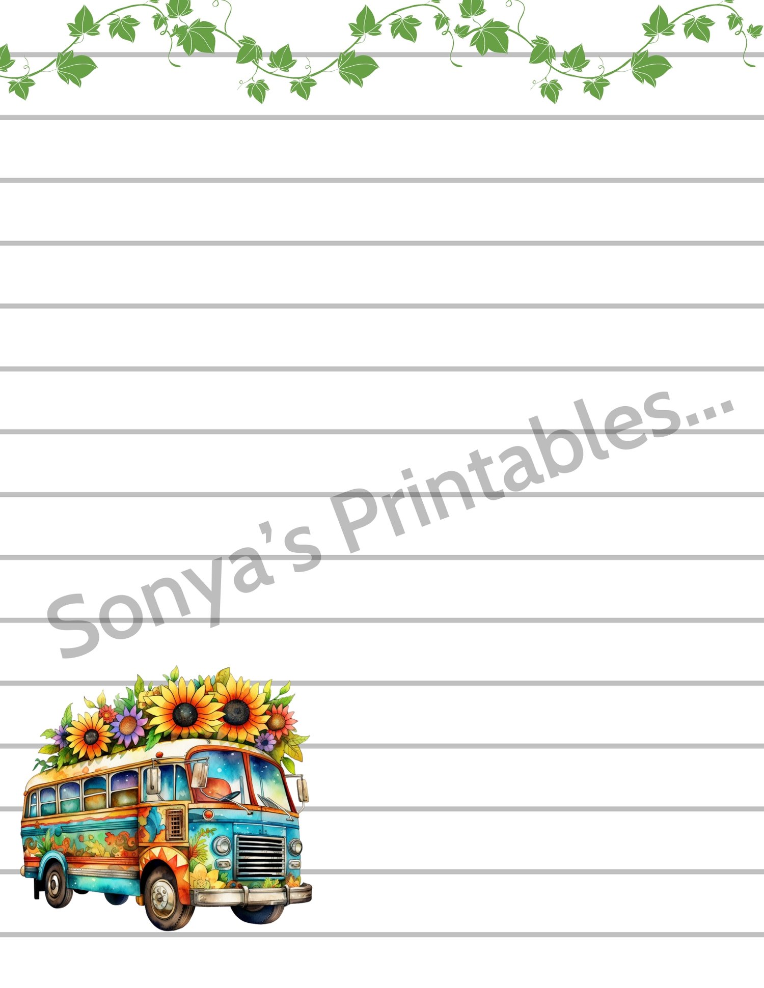 Floral Hippie School Bus Stationery | Printable Retro School Bus Writing Paper | Floral Hippie School Bus Note Paper | Retro Style Penpal Paper