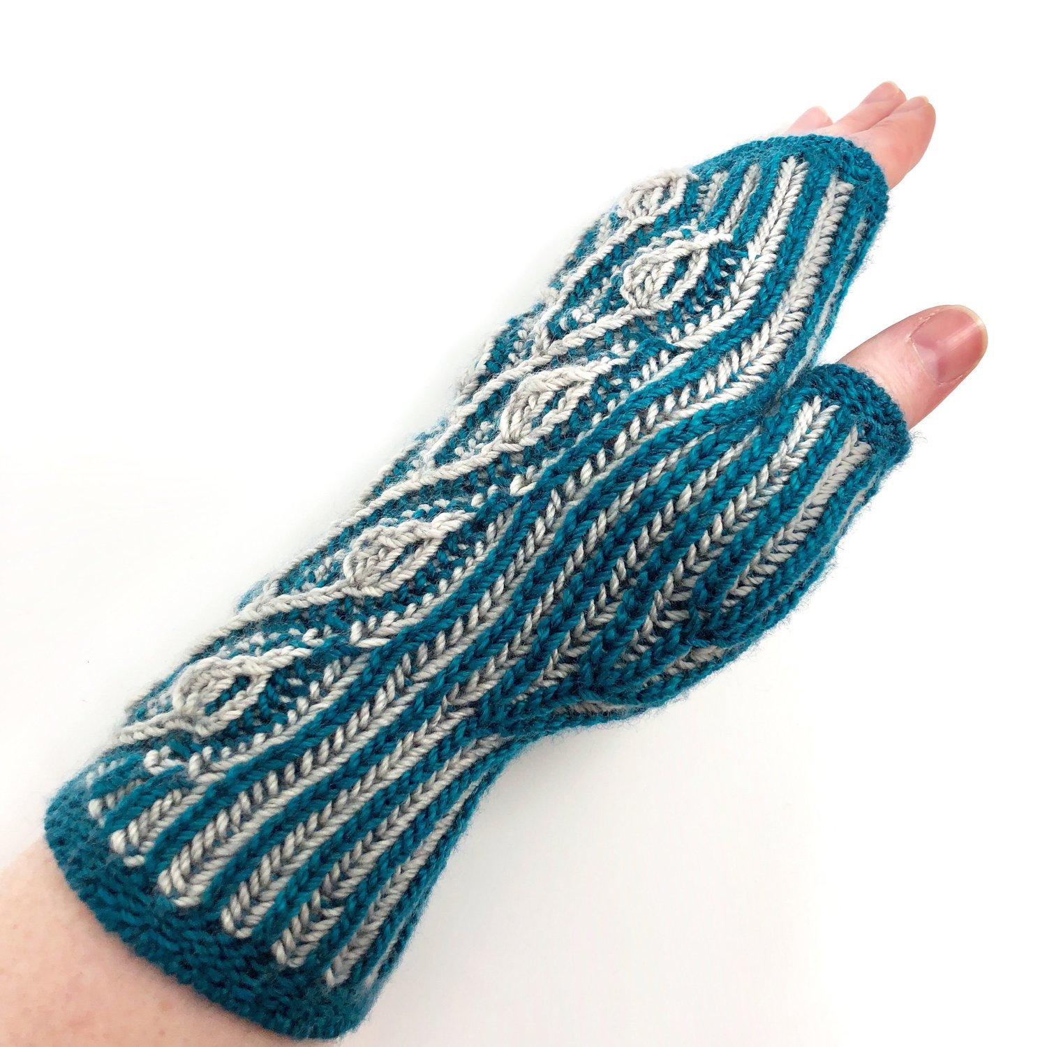 The mitts feature an optional knitted-in hem at the bottom cuff and the optional top hem is fastened off using Kitchener stitch. Video tutorial links are provided for both, but your favorite stretchy methods for cast-on and bind-off may be substituted.