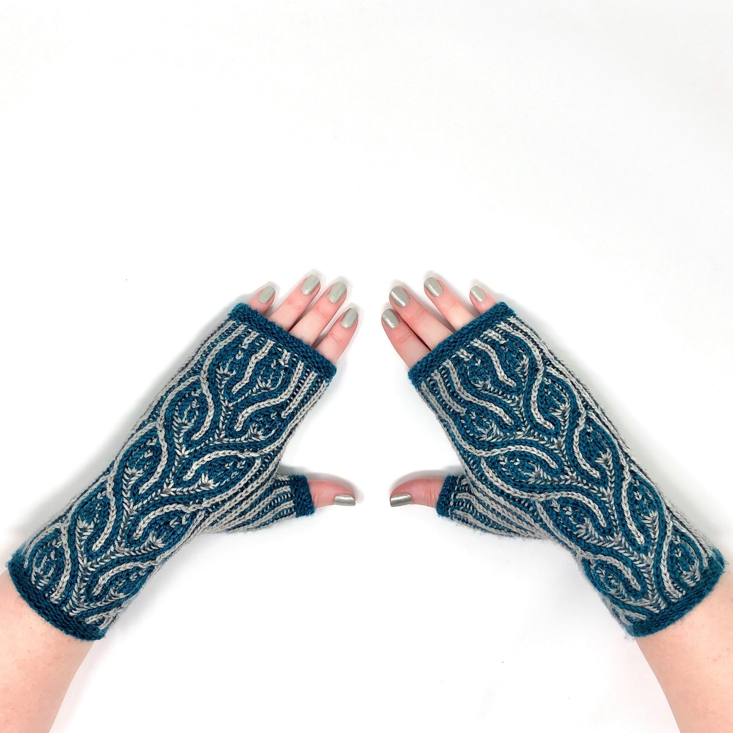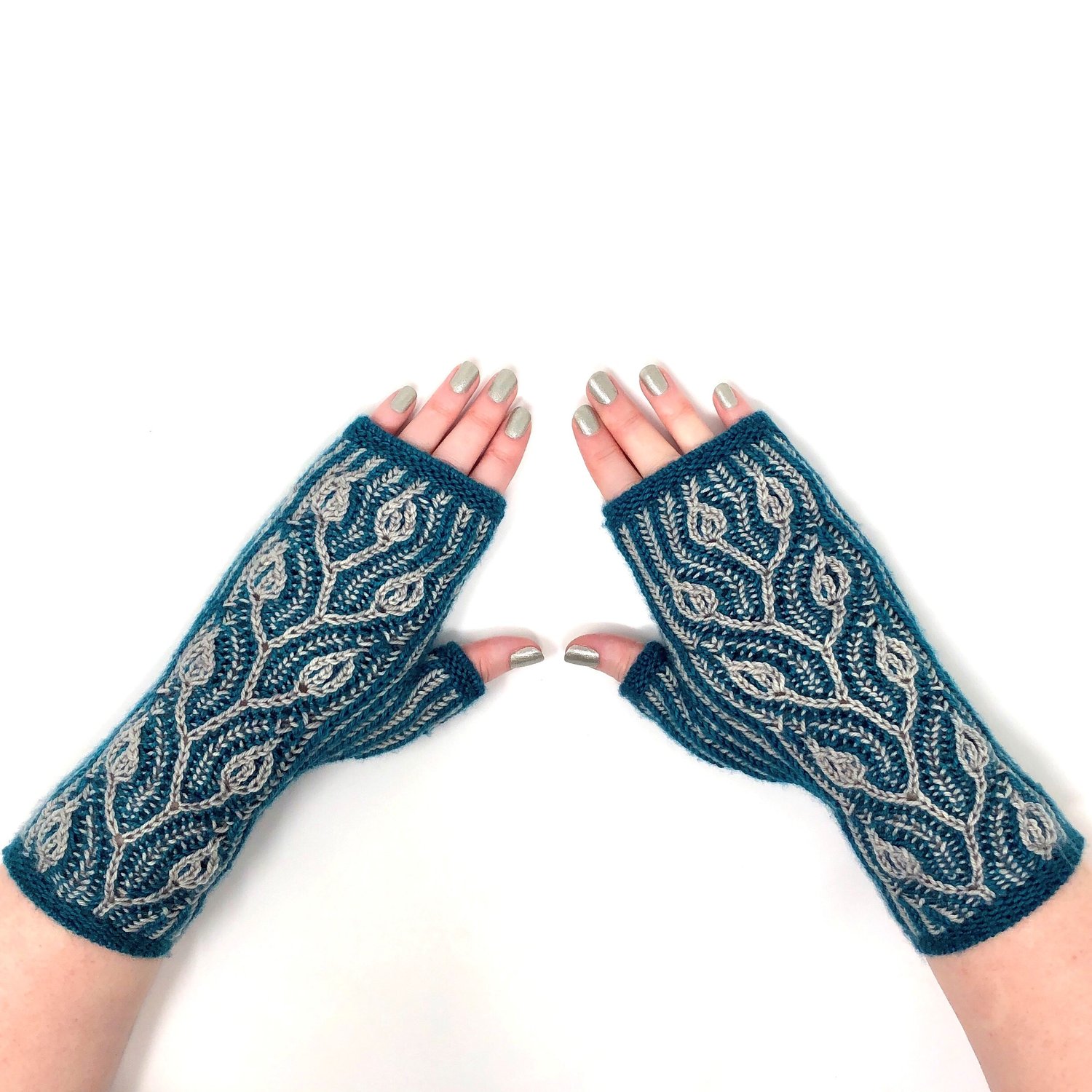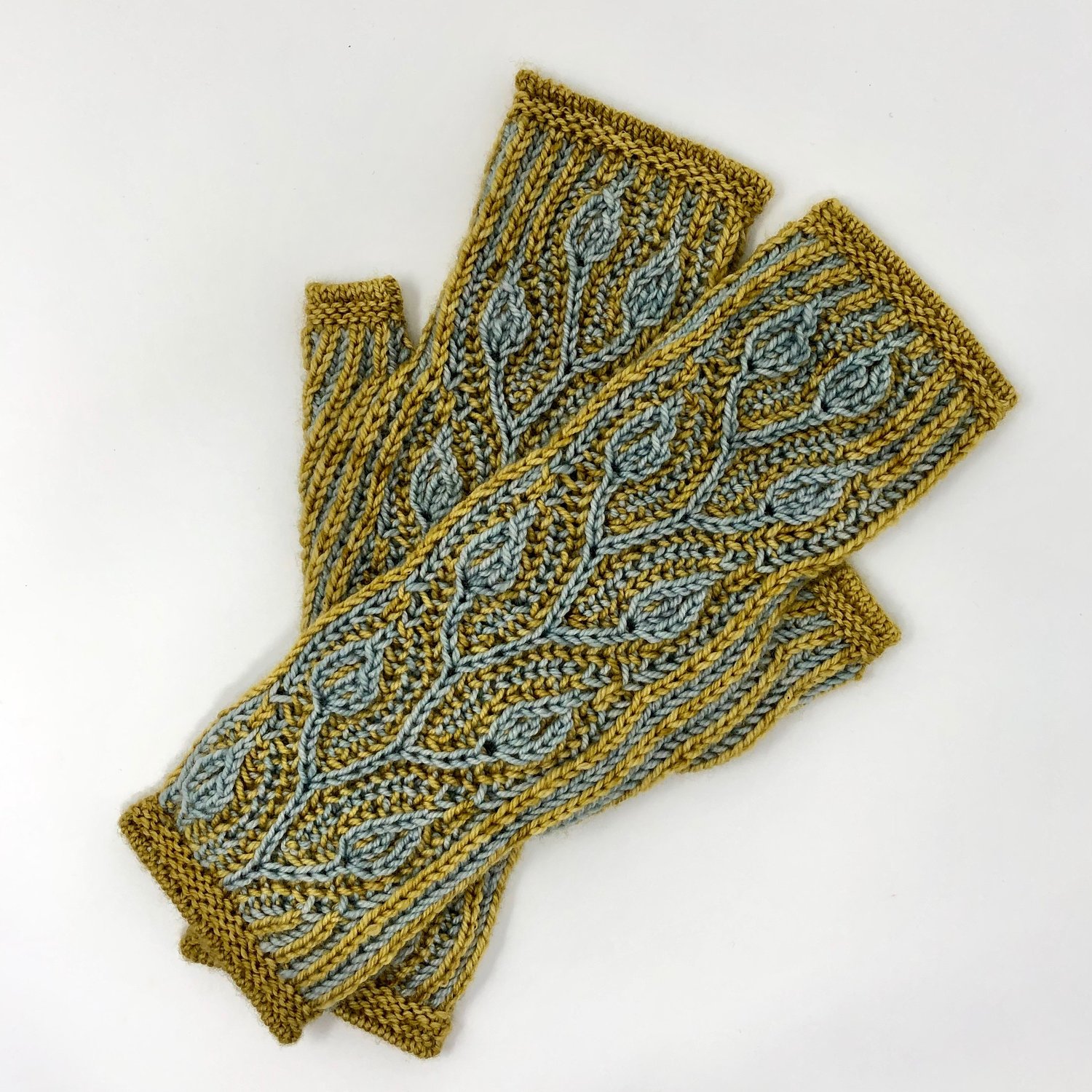 These beautiful mitts use a combination of brioche increases, decreases and syncopation to create the branching leaves. This leaf motif was originally developed for the Sylvan Tales Shawl, but since I’m a bit obsessed with these leaves I wanted to make some matching accessories! The mitts are knit in-the-round and from the bottom-up. These mitts match the Sylvan Tales Hat.