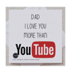 Printed with the message 'dad, I love you more than you tube'. This card is a certain to make your loved one smile.