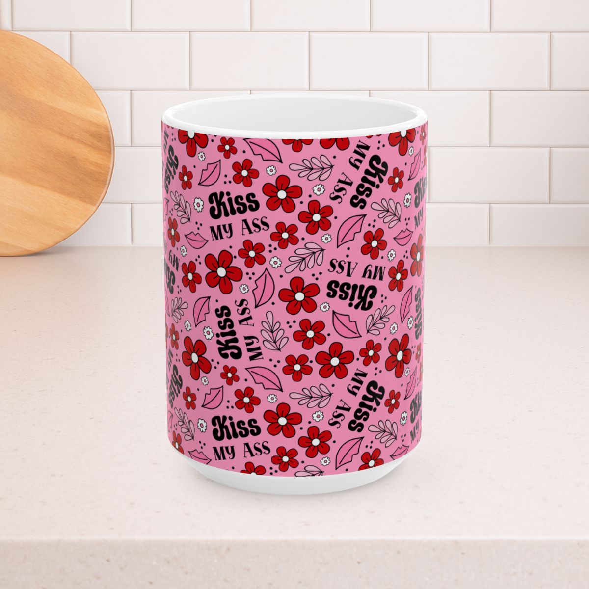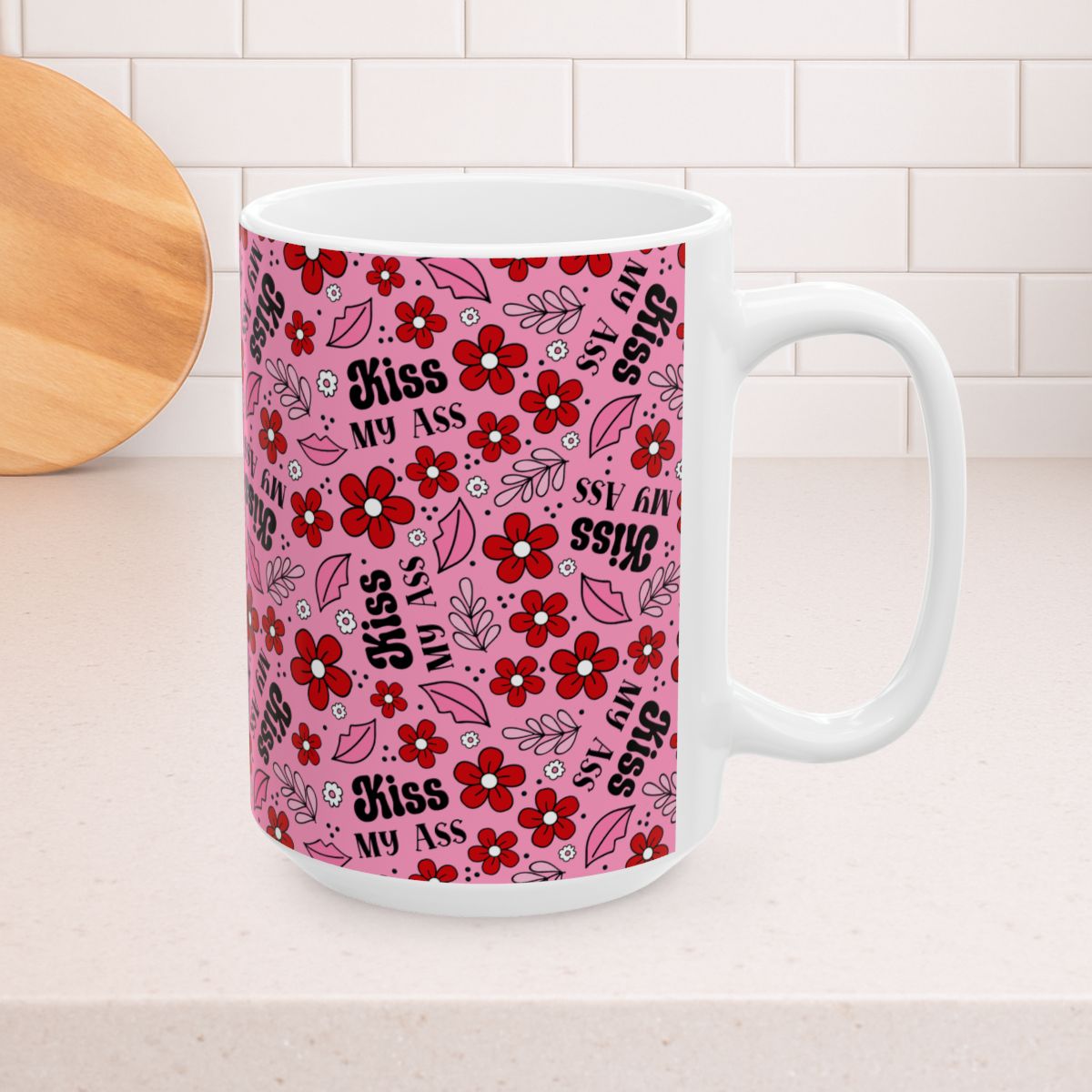 Kiss My Ass 15oz Ceramic Mug, Large Coffee Cup, Sarcastic Anti Valentine Lips