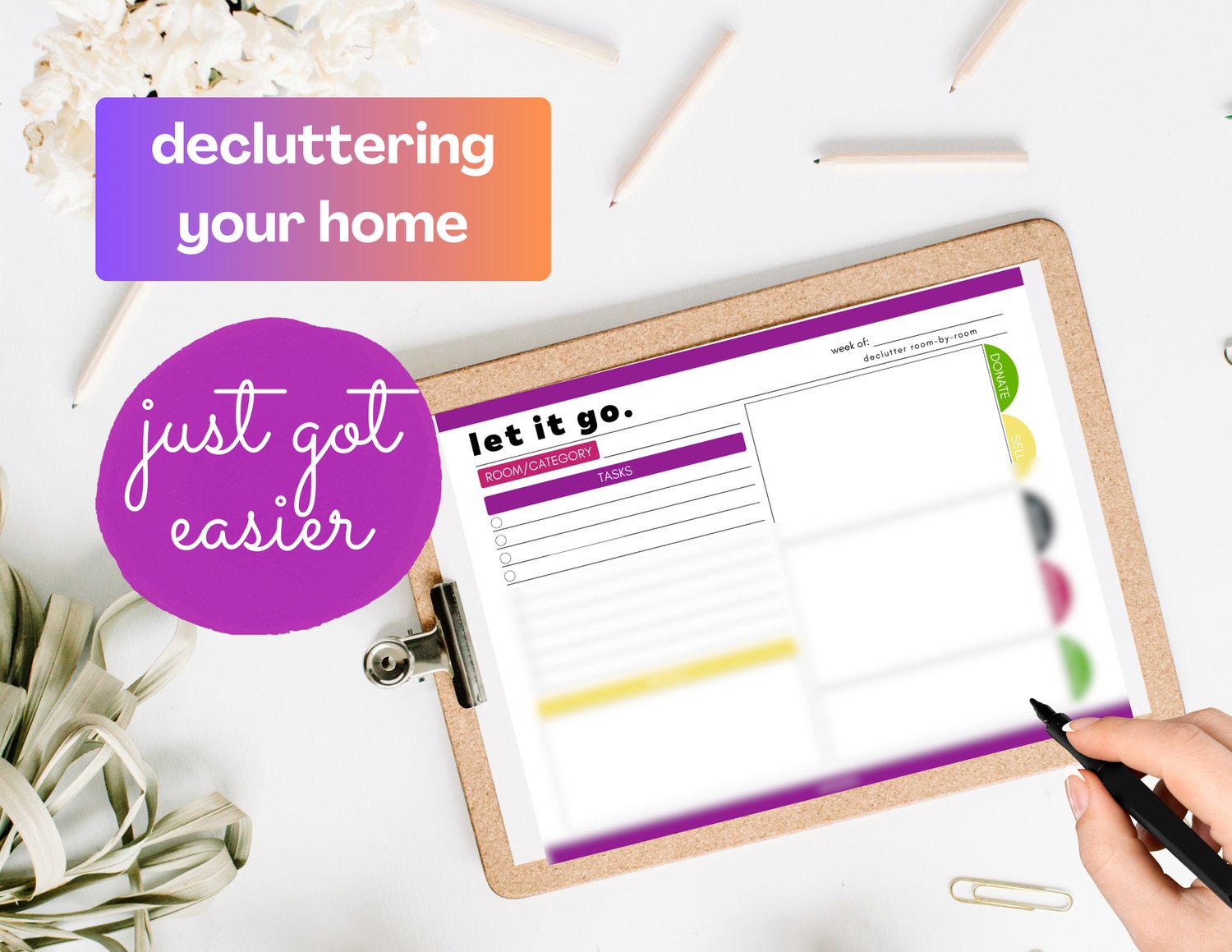 ✅ A one-page decluttering planner you can see at a glance