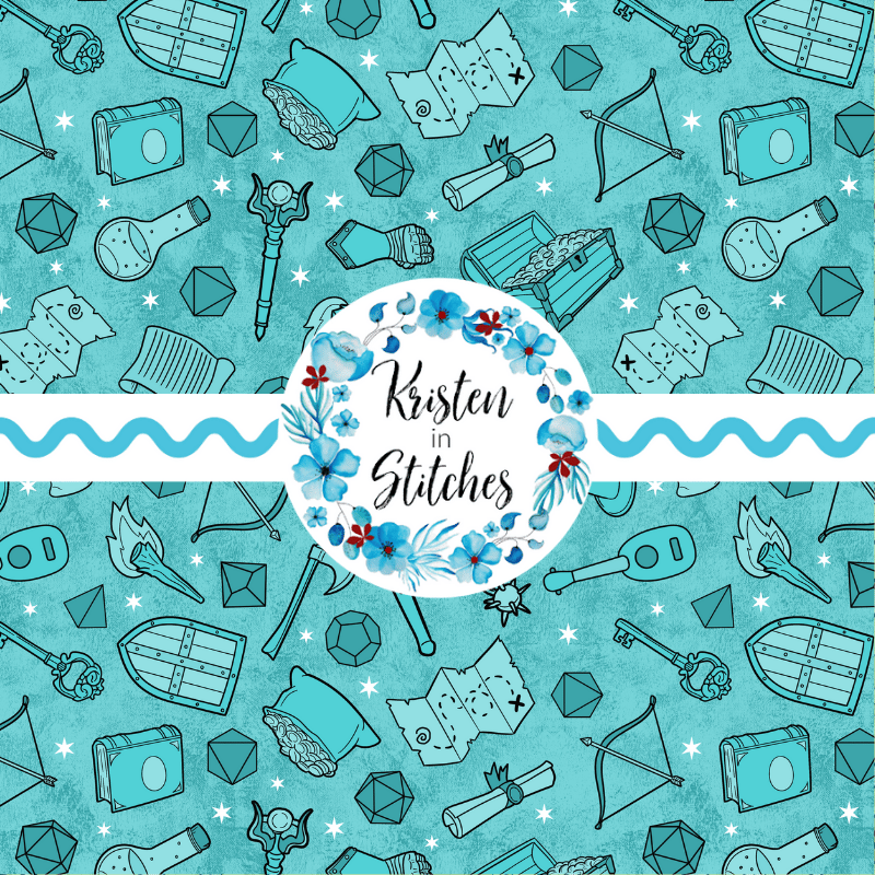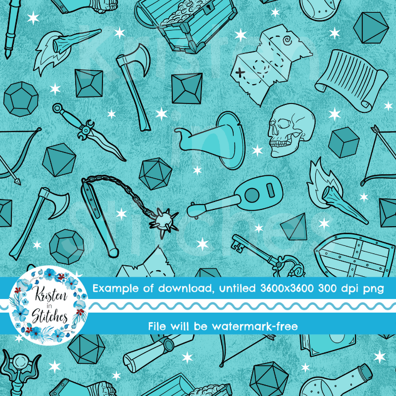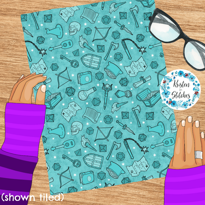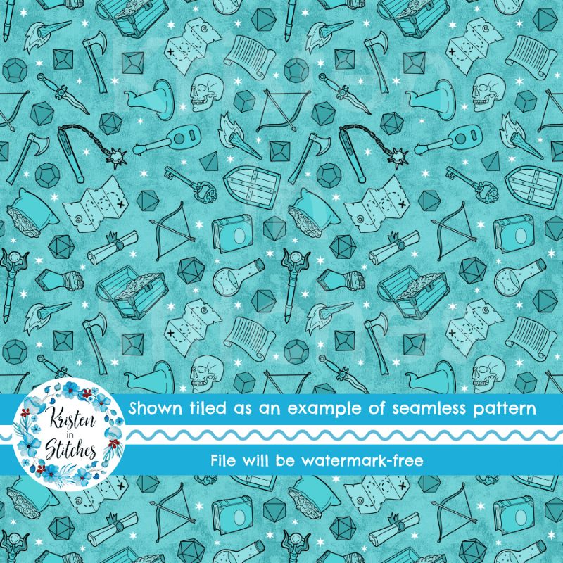 Fantasy Games Seamless Pattern, RPG DND Adventure, Polyhedral Dice, Turquoise