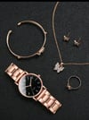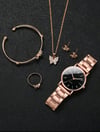 Women's Stainless Steel Band Simple Numerals Dial Quartz Watch + Jewelry Set (6pcs/set)