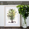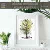I painted this tree with high-quality watercolors on Canson paper, 300 gr/m2, and it measures 15 x 19.5 cm. It is signed on the front and has a small sticker with my logo on the back.